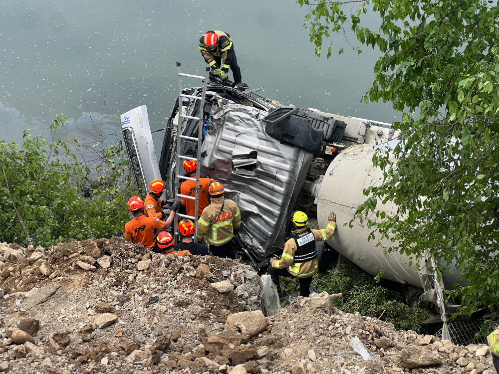 홍천소방서(서장 김숙자)는 2일 홍천평지에 호우주의보가 발효됨에 따라 레미콘 차량 추락사고로 인한 유류 유출 방지를 위해 신속한 대응을 펼쳤다고 밝혔다.