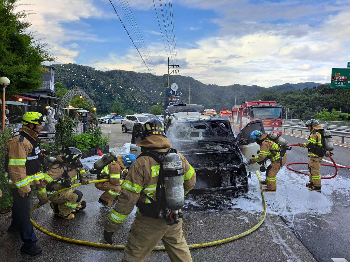 홍천소방서, 차량 화재 진압… 인명피해 없어