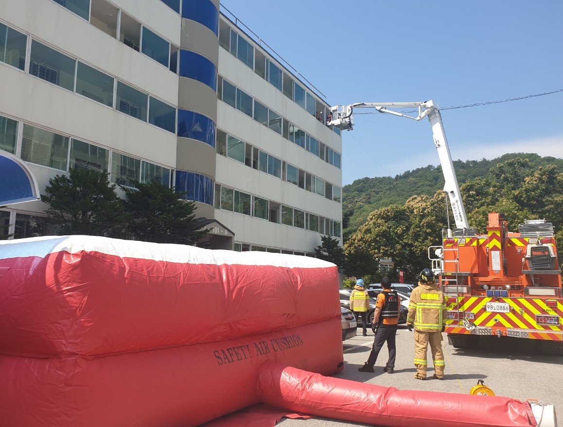 ○ 주요 내용은 ▲소방차 출동로 확보 ▲굴절차량 소방활동 장애요인 확인 및 전개 훈련▲공기안전매트 활용 인명 구조훈련 ▲계단 이용 현장 진입 훈련 등이다.