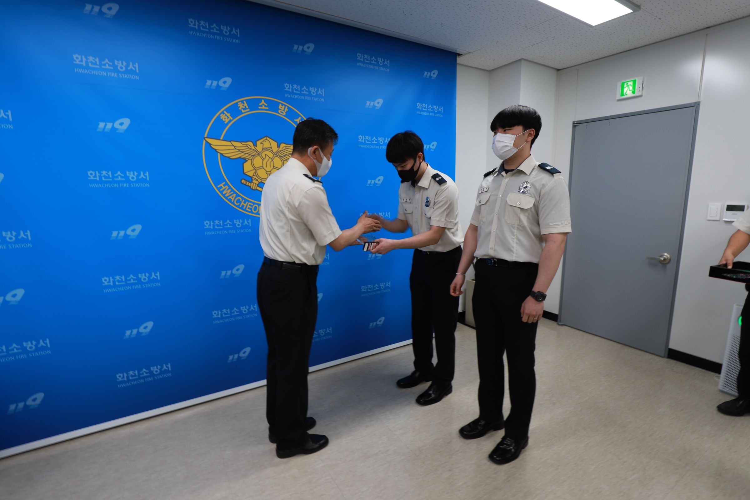 화천소방서는 2021년 6월 17일 제65기 의무소방원 2명(정희원, 송헌형) 전역식을 실시하였습니다.