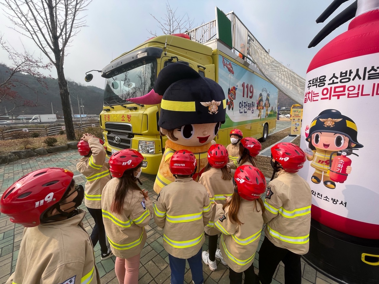 화천소방서는 11월 19일 원천초등학교를 방문하여 학교로 찾아가는 119안전체험교육을 실시했습니다.