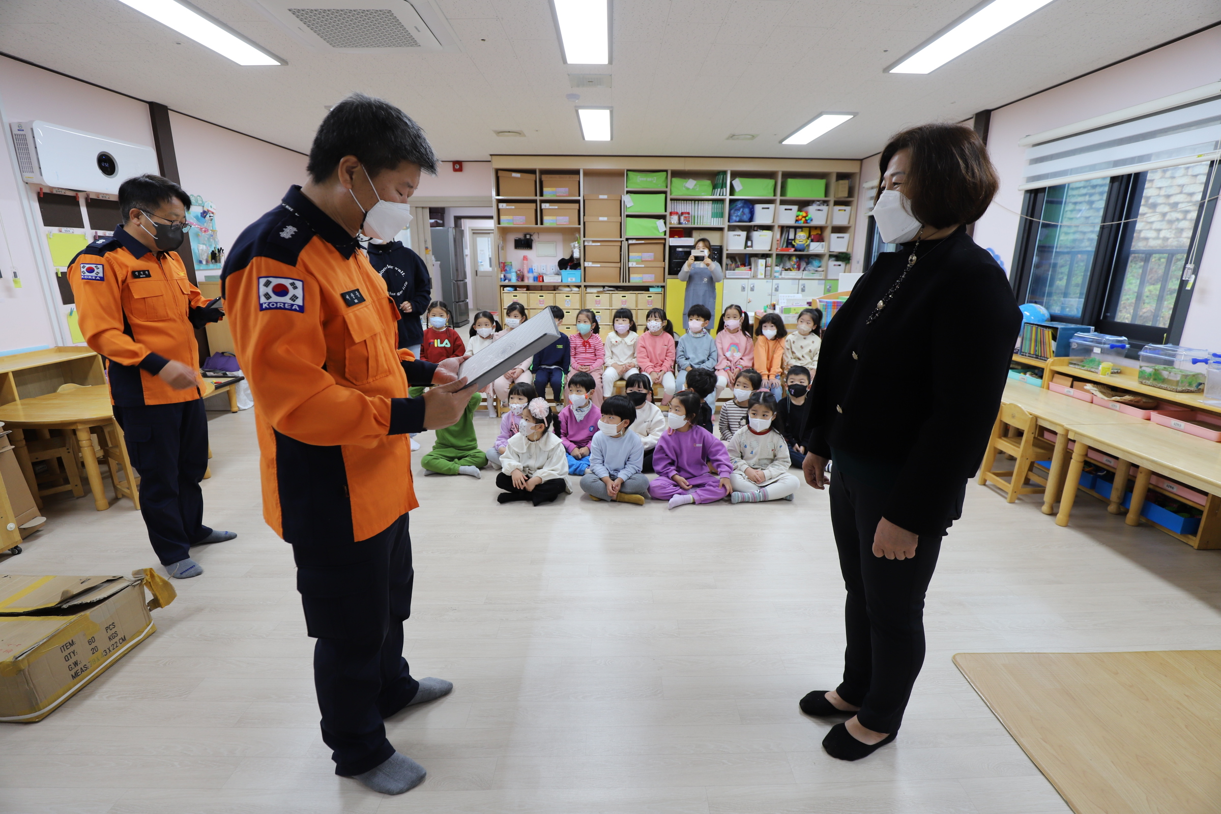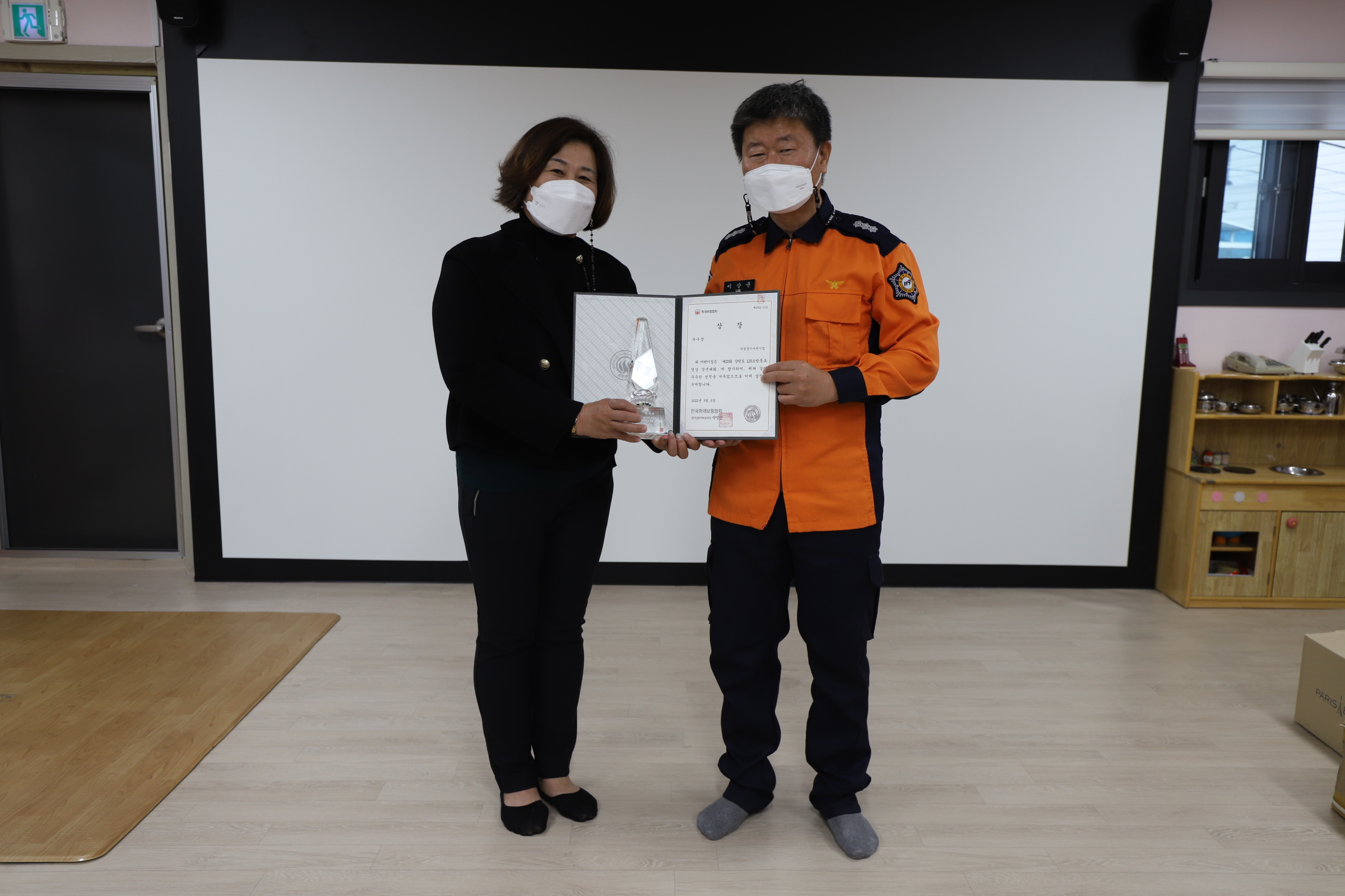 화천소방서(서장 염홍림)는 14일 귀염둥이 어린이집에서 ‘제 23회 강원도 119소방동요 경연대회’ 우수상 한국화재보험협회 강원지역본부장 표창장 전수식을 진행했다고 밝혔다.