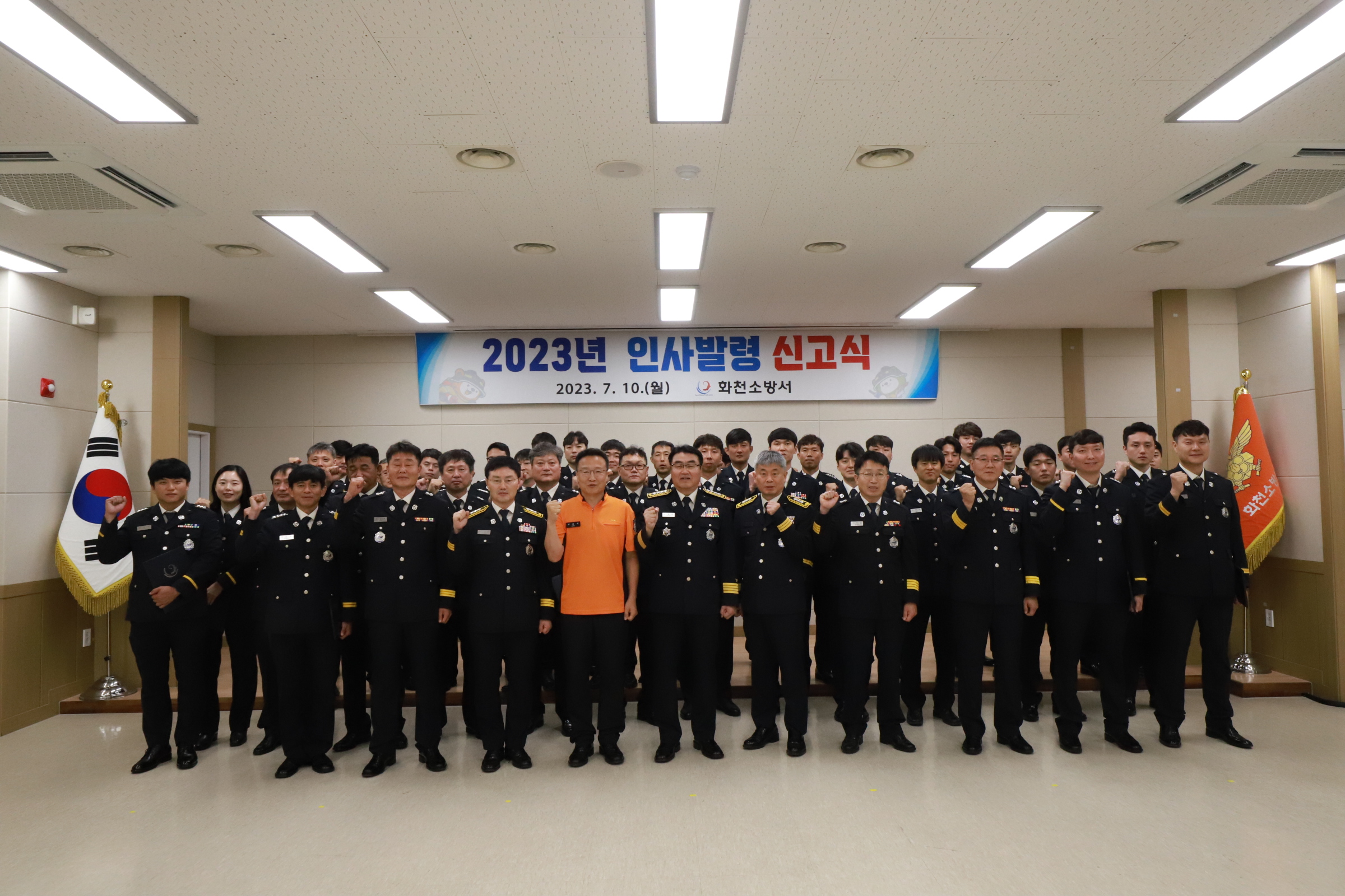 화천소방서(서장 염홍림)는 7월 10일 오전 10시 대회의실에서 2023년 하반기 정기 인사에 따른 소방경 이하 42명에 대한 서내 인사발령식을 실시했다.