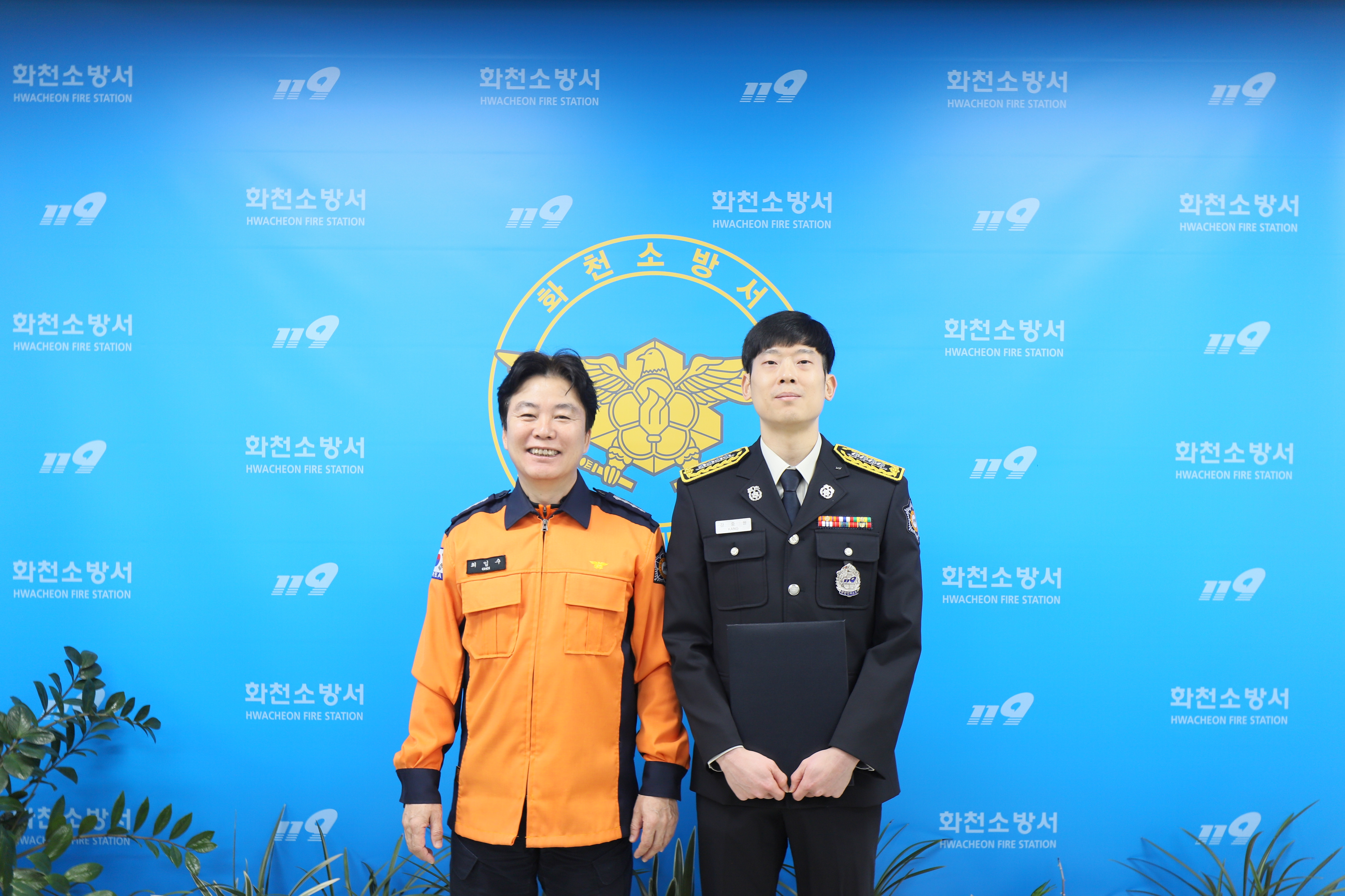 오늘 오전 9시 30분, 서장실에서 시도 교류 전입자 1명(소방장 강중원)에 대한 임용장 수여식을 진행했습니다.