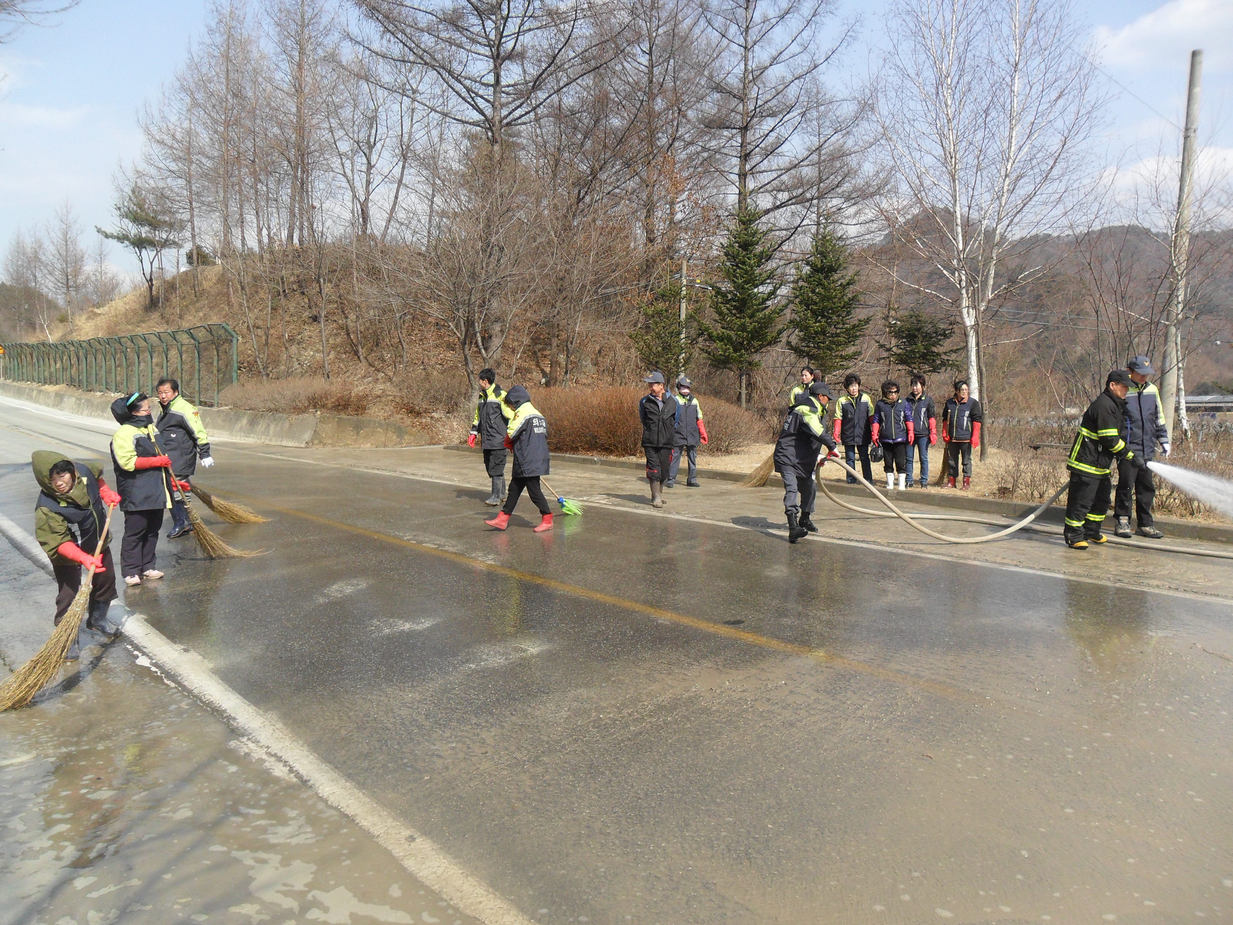 남,여 의용소방대원 20여 명이 적극적으로 참여하여 깨끗하게
