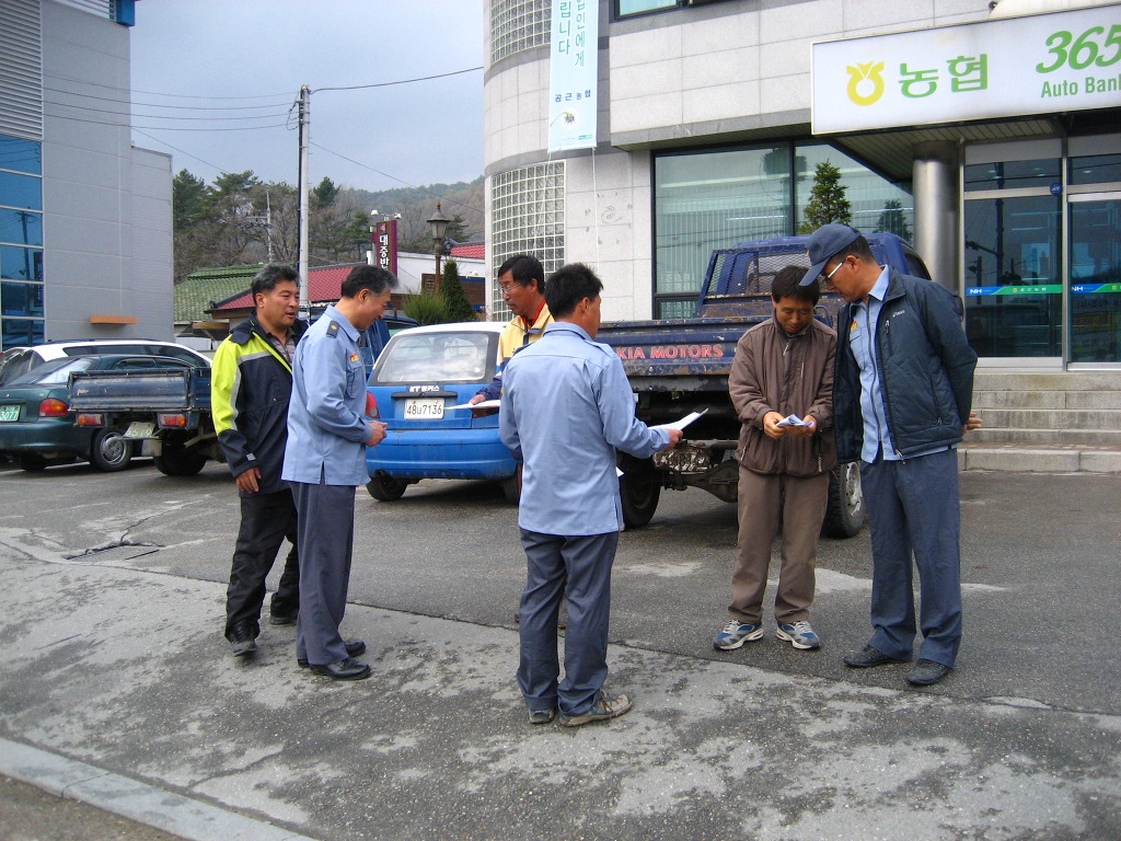 "소방차 길터주기" 등 화재와의 전쟁 전단지를 배부하면서 한컷 !!