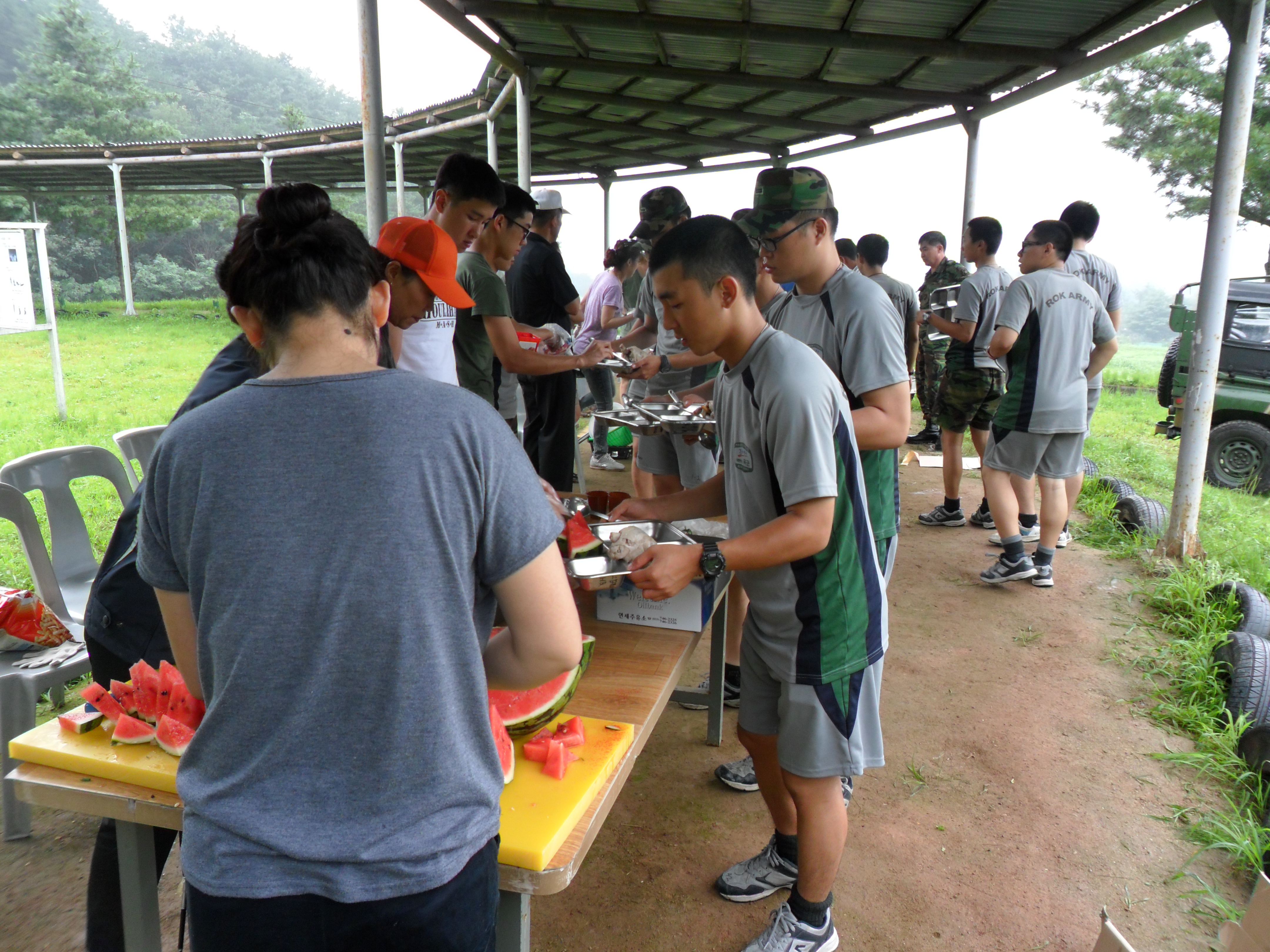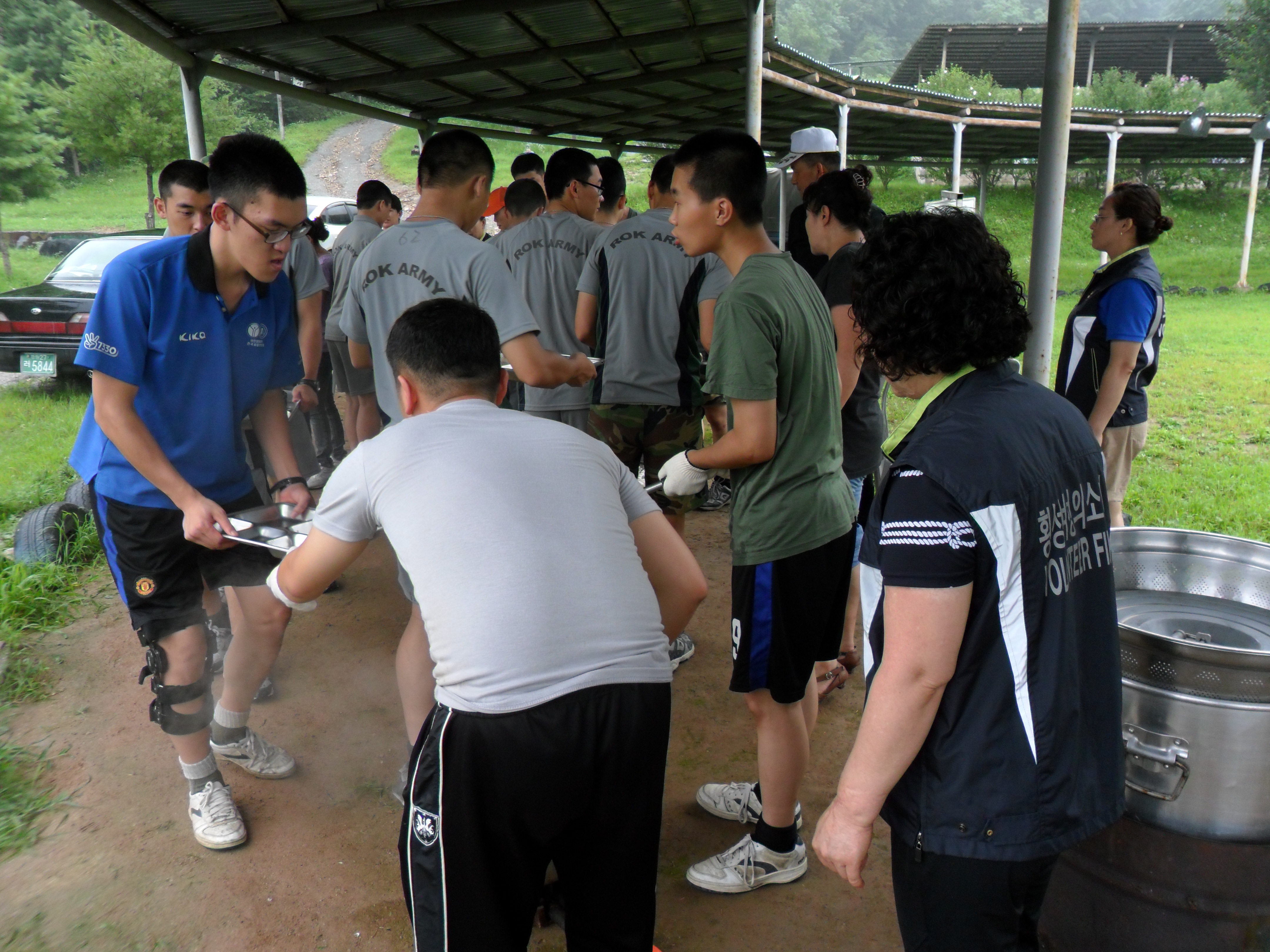 대장 박선숙 등 10명이 공근 8375부대에 방문하여 대원들이 준비한 삼계탕을