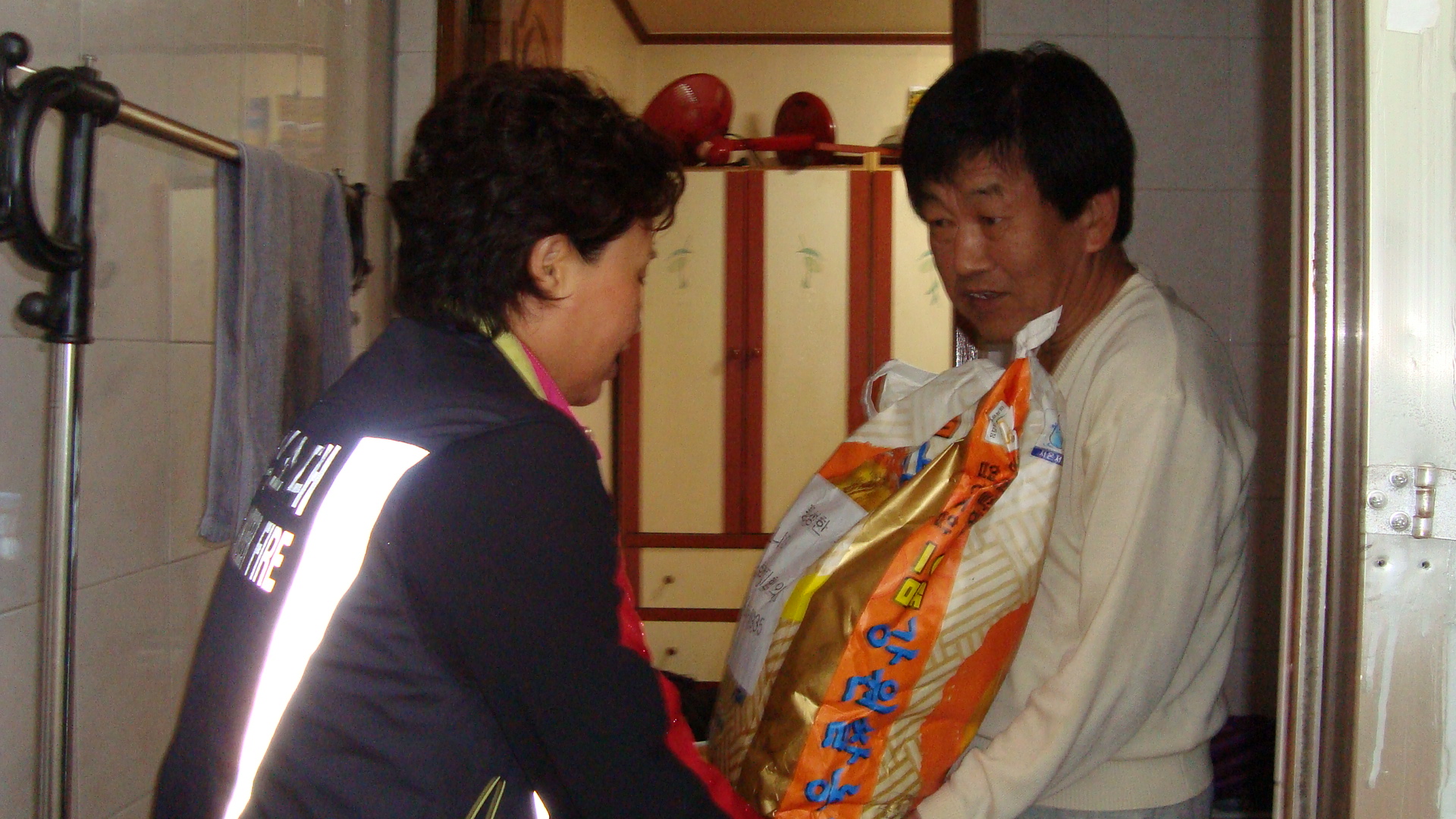 둔내여성의용소방대 --독거어르신 송편,쌀배달--