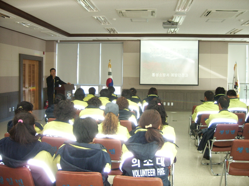 청일 남,여 의용소방대는 11.12.16(금) 각 대장님이 참석한 가운데 추가(보수)교육을 실시하였습니다. 특히 이날은 둔내센터장님께서 참석하시어 개정된 의소대설치조례 및 CPR 실습 등을 교육하셨습니다. 쌀쌀해진 날씨때문에 헤이해진 마음을 더욱더 돈독히 하는 좋은 교육이 되었던것 같습니다~~!!