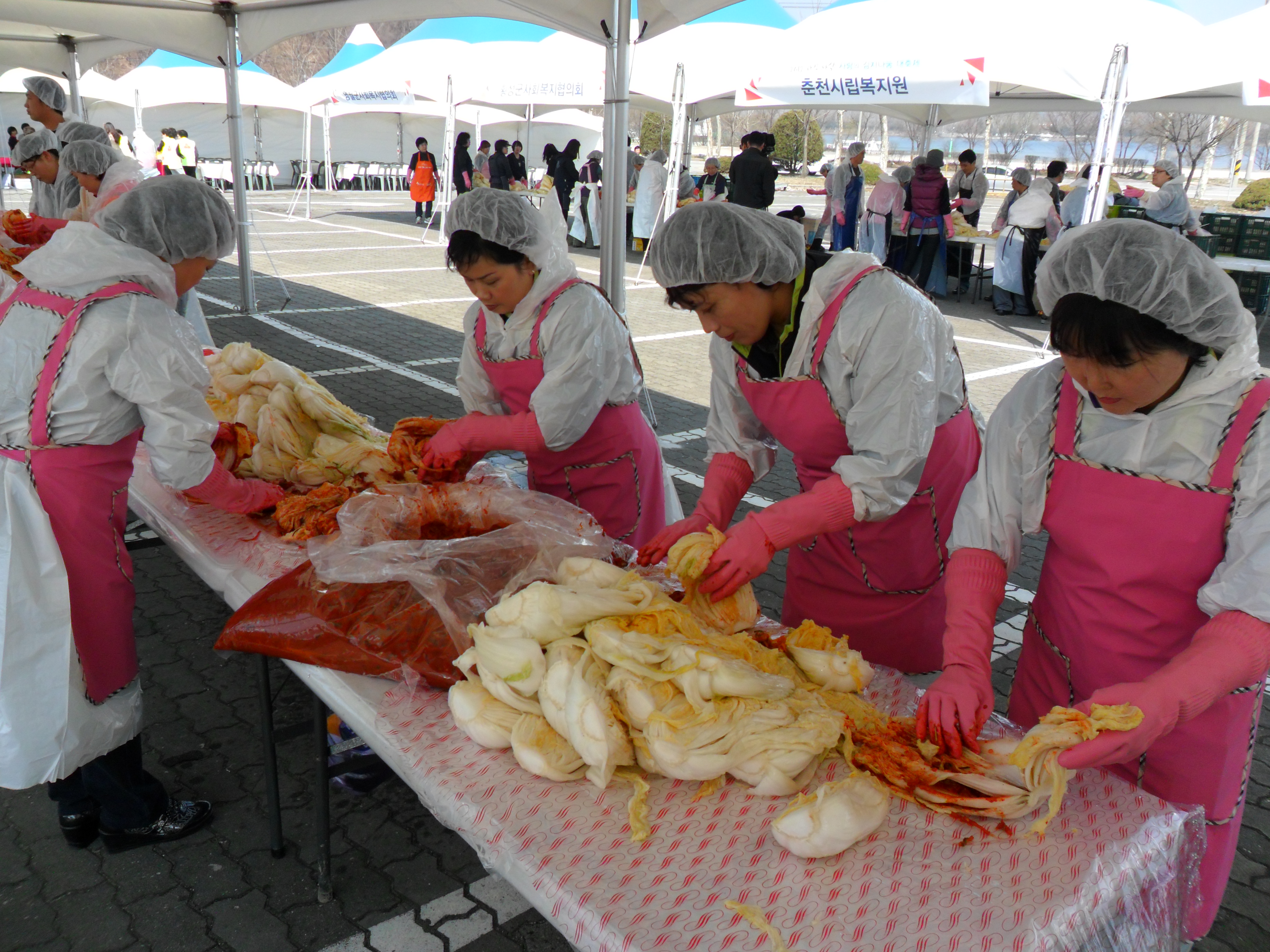 2012년 04월 09일 월요일 횡성여성의용소방대장 박선숙 외 5명의 대원들이 춘천에서 실시한 김치봉사활동에 참여하여 독거노인 200여가구에 제공할 김치를 담갔습니다.