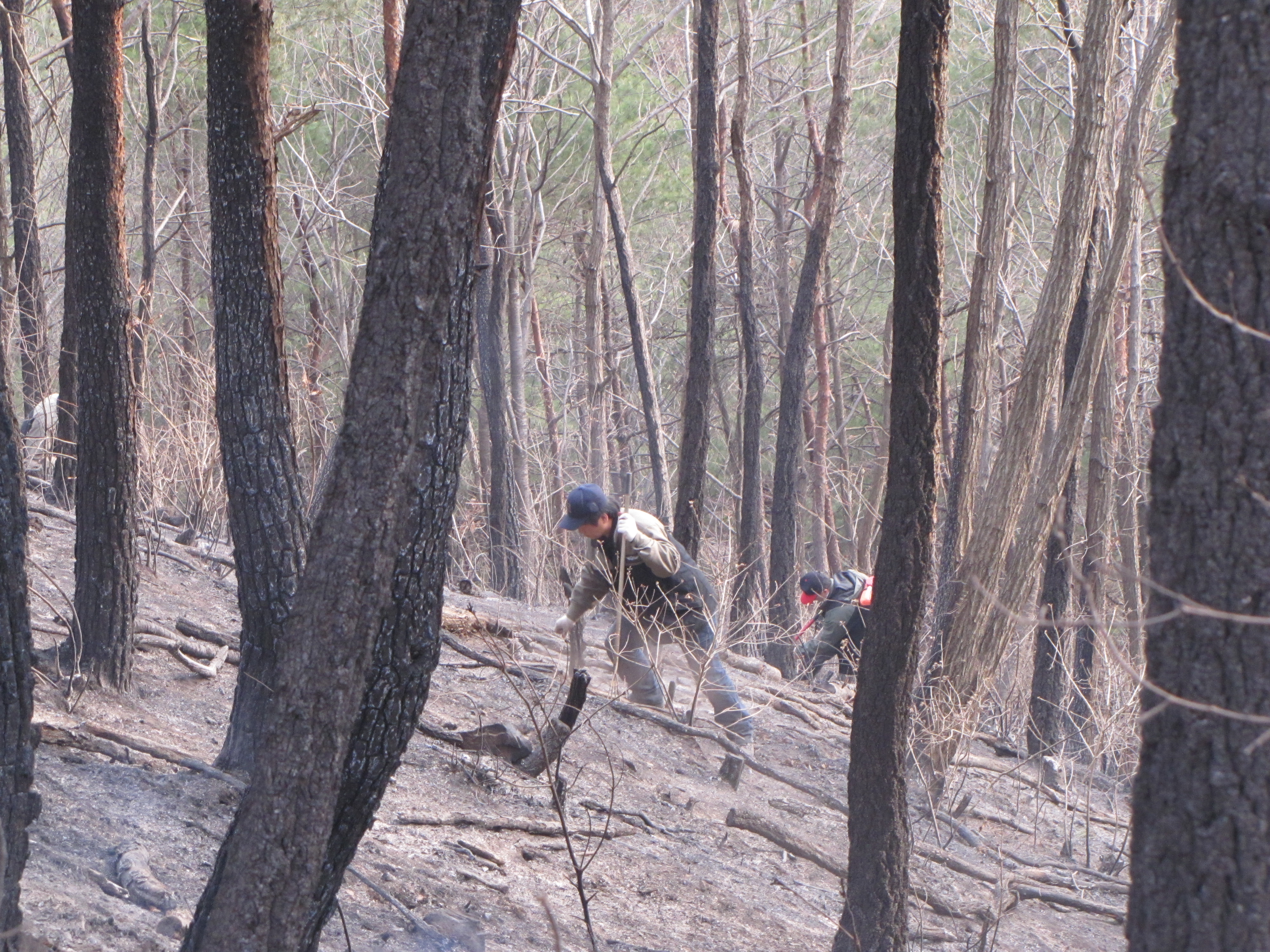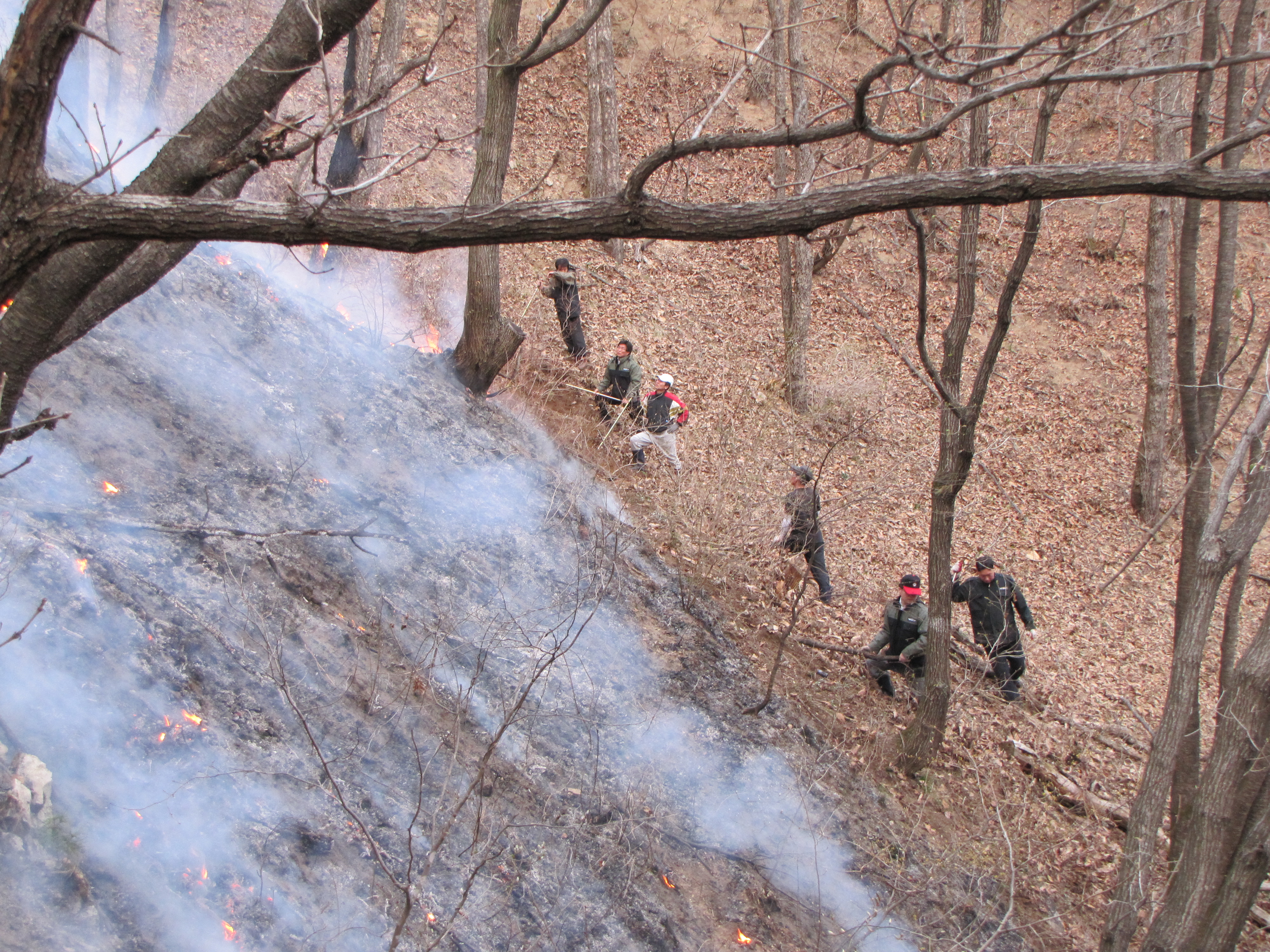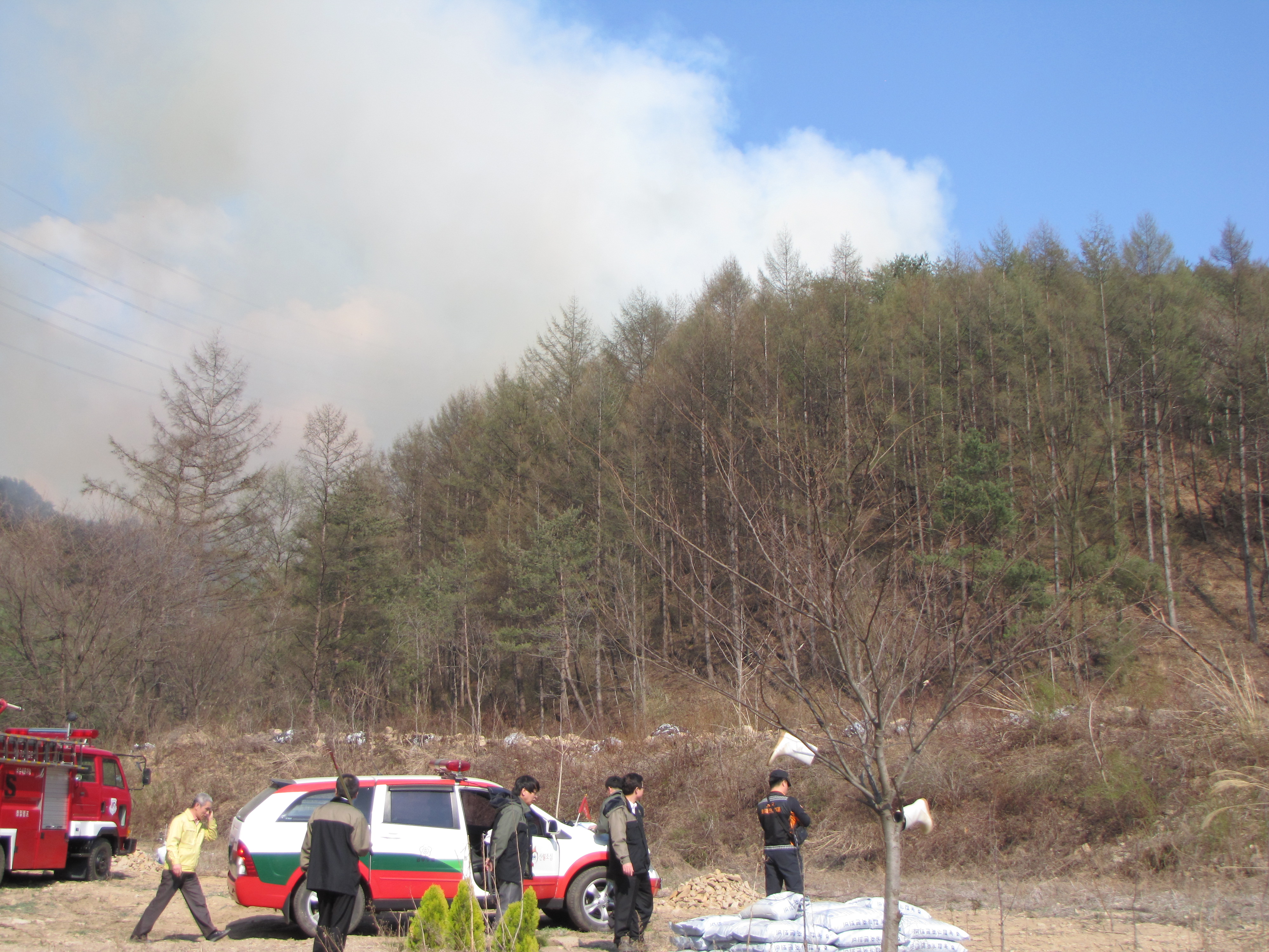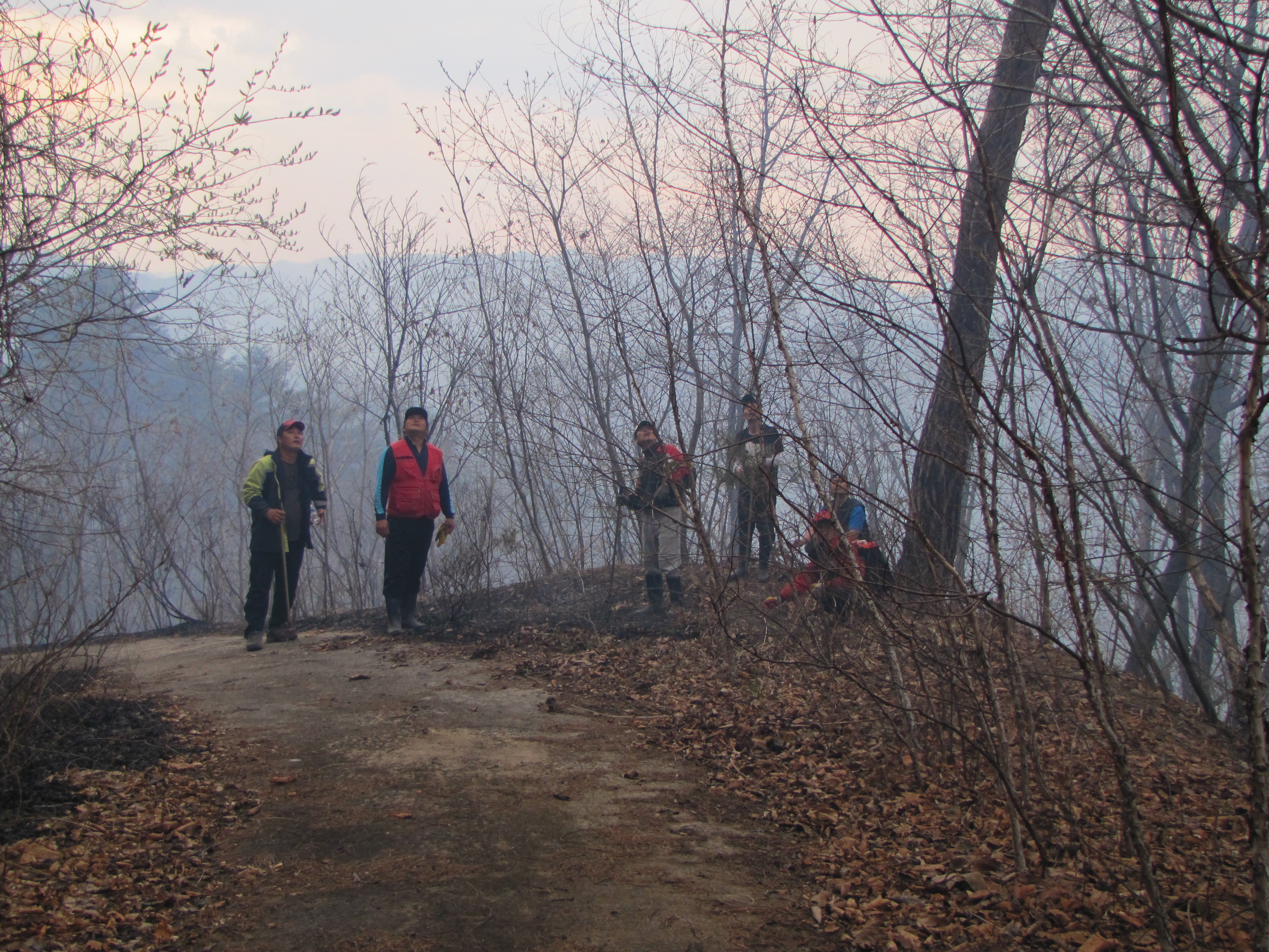 갈퀴들고 방어선구축 19시50분경 완진 약2ha소실 인피무