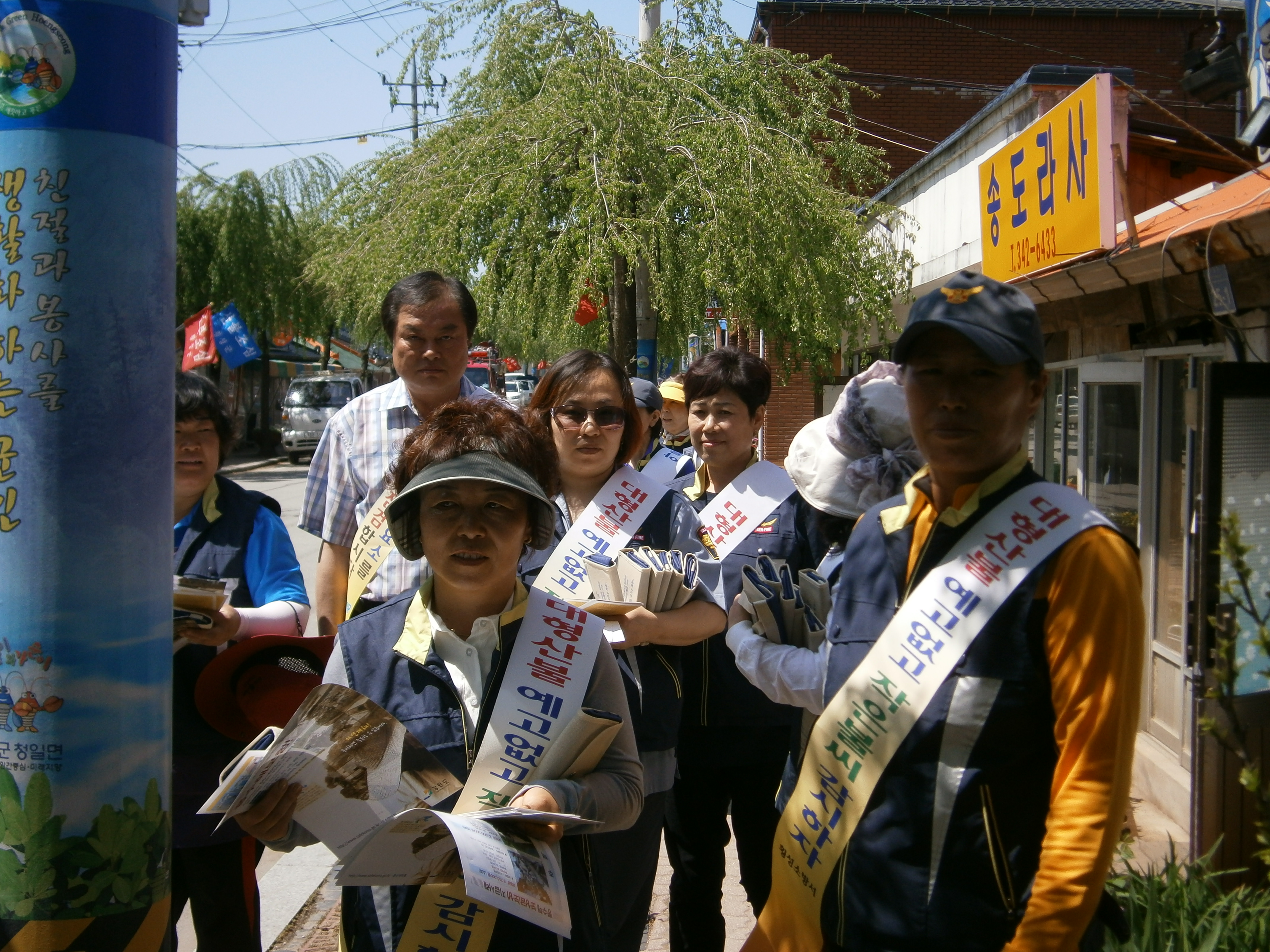 오전11시부터 12시까지 청일시가지 를 돌며 산불조심 캠페인 홍보물을 배포하였습니다.