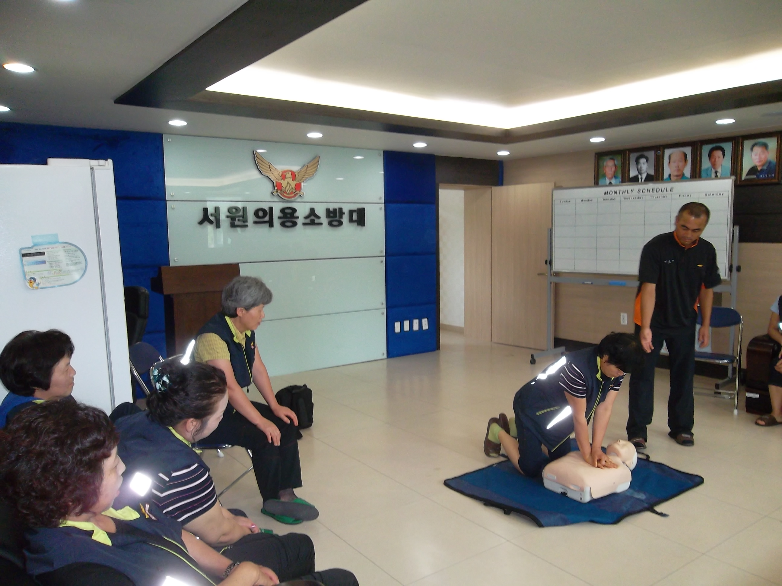 서원여성의용소방대(대장 윤은숙) 에서는 2012년 6월 27일 의소대 정기교육을 서원지역대에서 실시하였습니다. 이제 나의 가족 나의 이웃을 생각하며 심폐소생술을 열심히 배우고 실습하는 시간이였습니다.