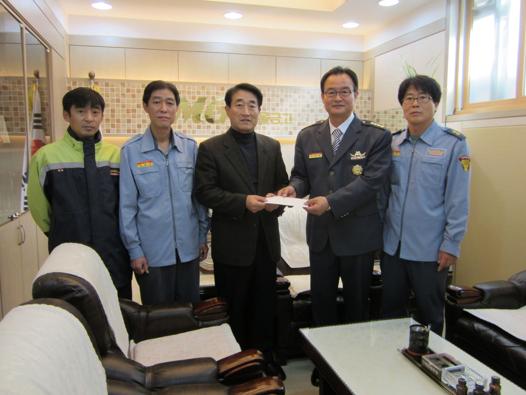 2012년 11월 15일 10:30분 횡성새마을금고 주관 사랑의 연탄모으기 기금 (연탄1,000장)을 횡성새마을금고 이사장(이석원)님께 횡성의소대의 기금전달식을 가졌습니다.