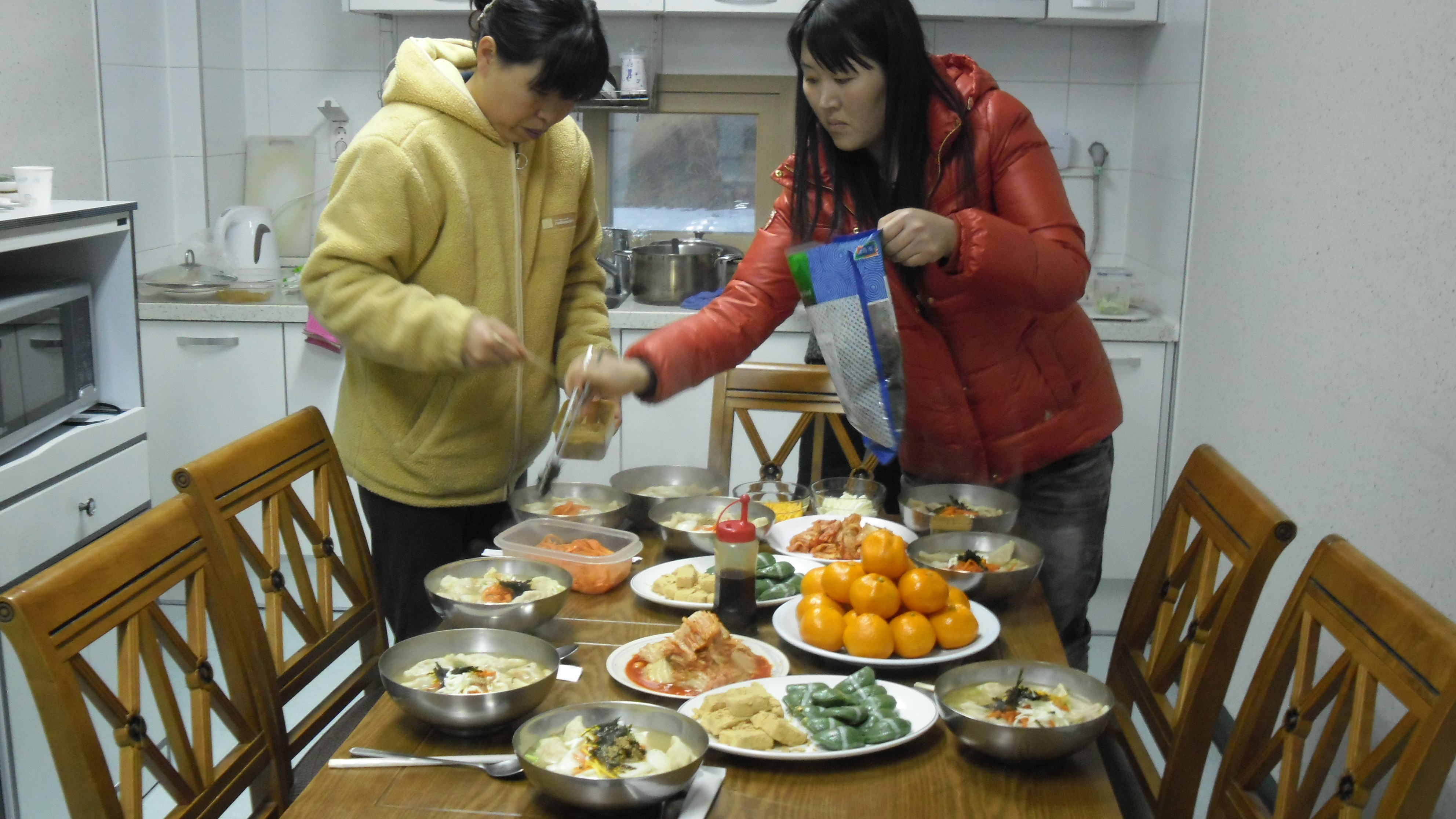 우천 여성대 직원들 저녁 식사 만두국 대접