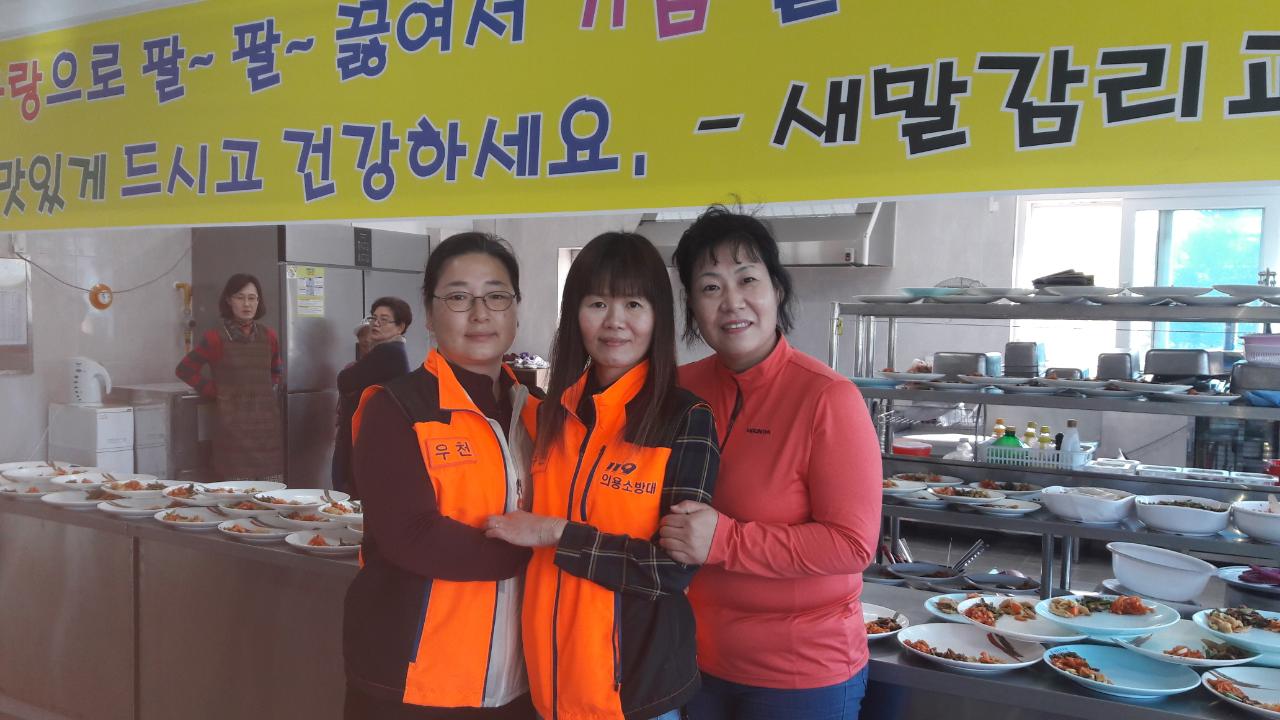 10월25일 실버대학 급식봉사를 부대장 김영숙, 양은영 반장, 백금녀 반장이 다녀왔습니다. 지역 소외계층을 위하여 봉사하는 우천여성의용소방대원의 봉사활동을 응원합니다,