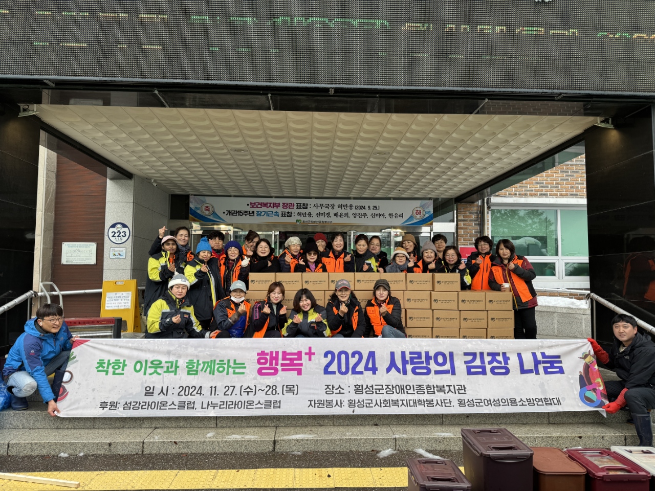 11월 26일~27일 이틀에 걸쳐 횡성소방서 여성의용소방대 연합회는 김장 800포기 담궈