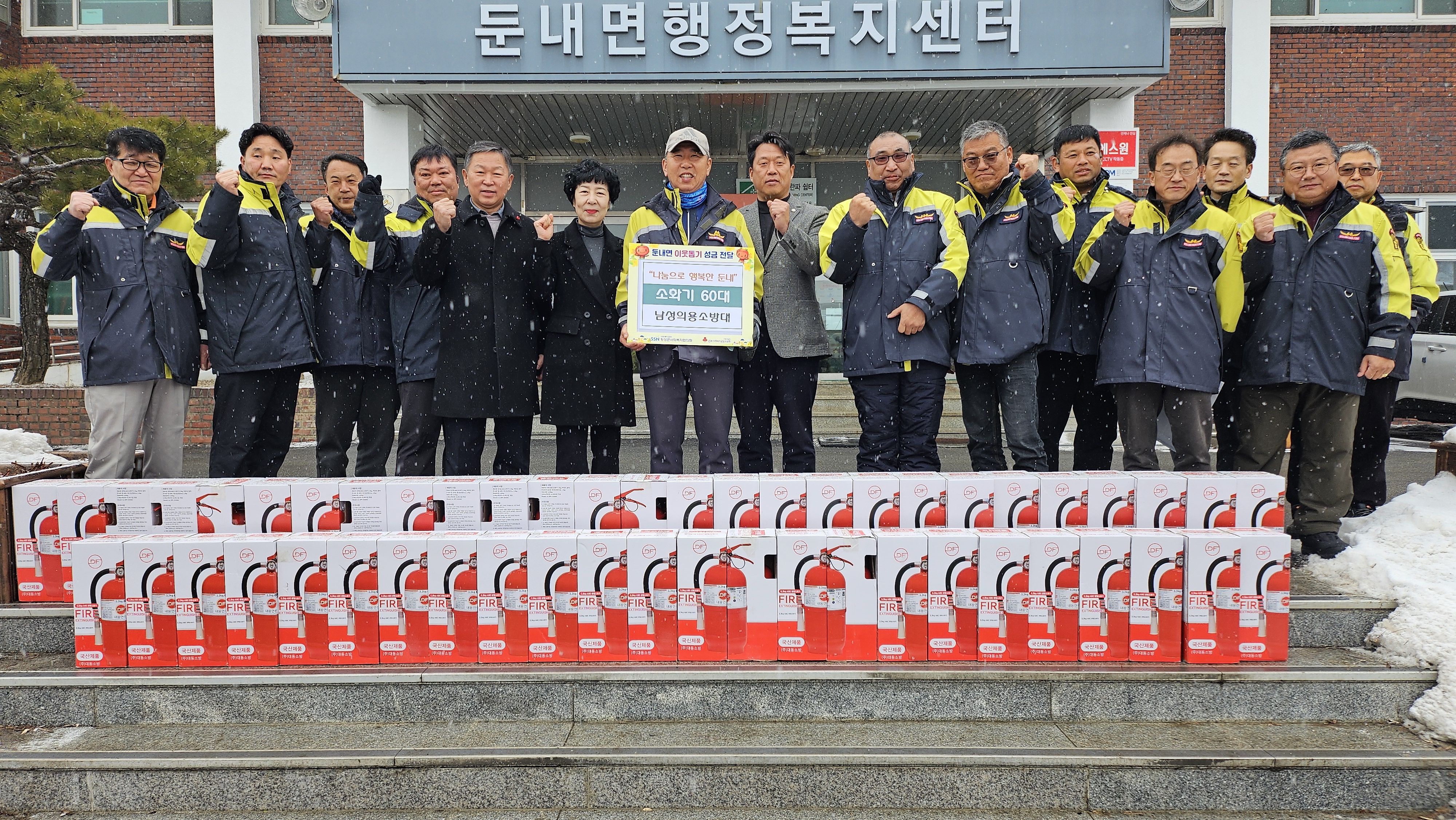 산악대에서는 자체적으로 소화기 60개를 구매하여 화재 예방이 필요한 시설에 전달하고,