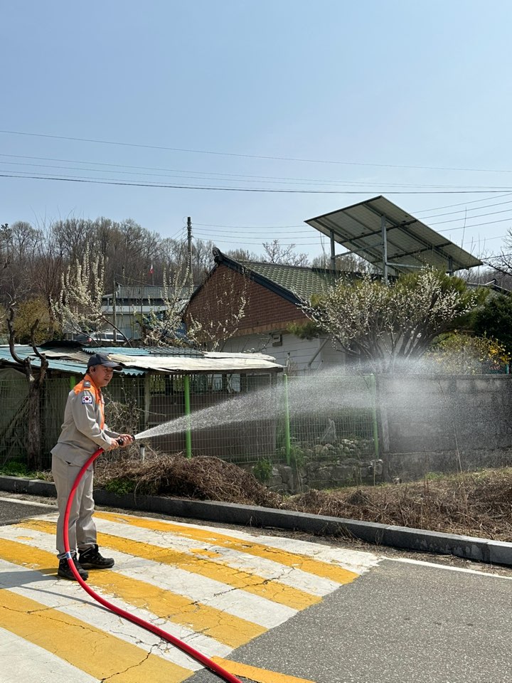 4월 16일 의용소방대 산불진화기동대원들이 산불위험이 높은 산림인접 마을과 광제사 앞 횡성비소함022호 일대에서 특별교육을 받았습니다.