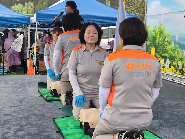 공근여성의용소방대, 공근면민 체육대회서 심폐소생술 시범 펼쳐