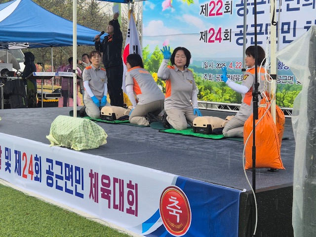 횡성소방서 공근여성의용소방대는 4월 22일(화), 공근면민 체육대회 현장에서 심폐소생술(CPR) 시범을 선보이며 생명존중 문화 확산에 앞장섰습니다.