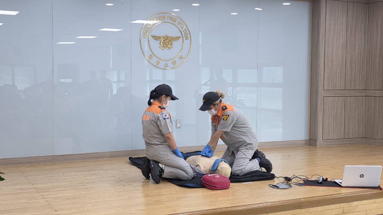 이번 시연회에서는 ▷심폐소생술 시연(횡성여성의용소방대), ▷4인조법 시연(공근남성의용소방대), ▷호스전개 및 회수 시연(횡성여성의용소방대) 등
