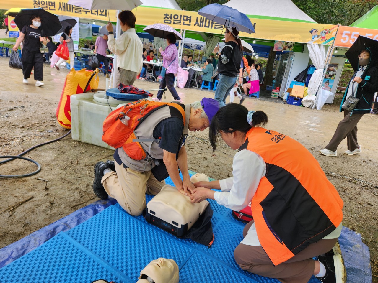 청일 남·녀의용소방대는 지난 9월 19일부터 21일까지 열린 제12회 횡성더덕축제에서 방문객들을 대상으로 소방안전 교육활동과 캠페인 활동을 펼쳤습니다.