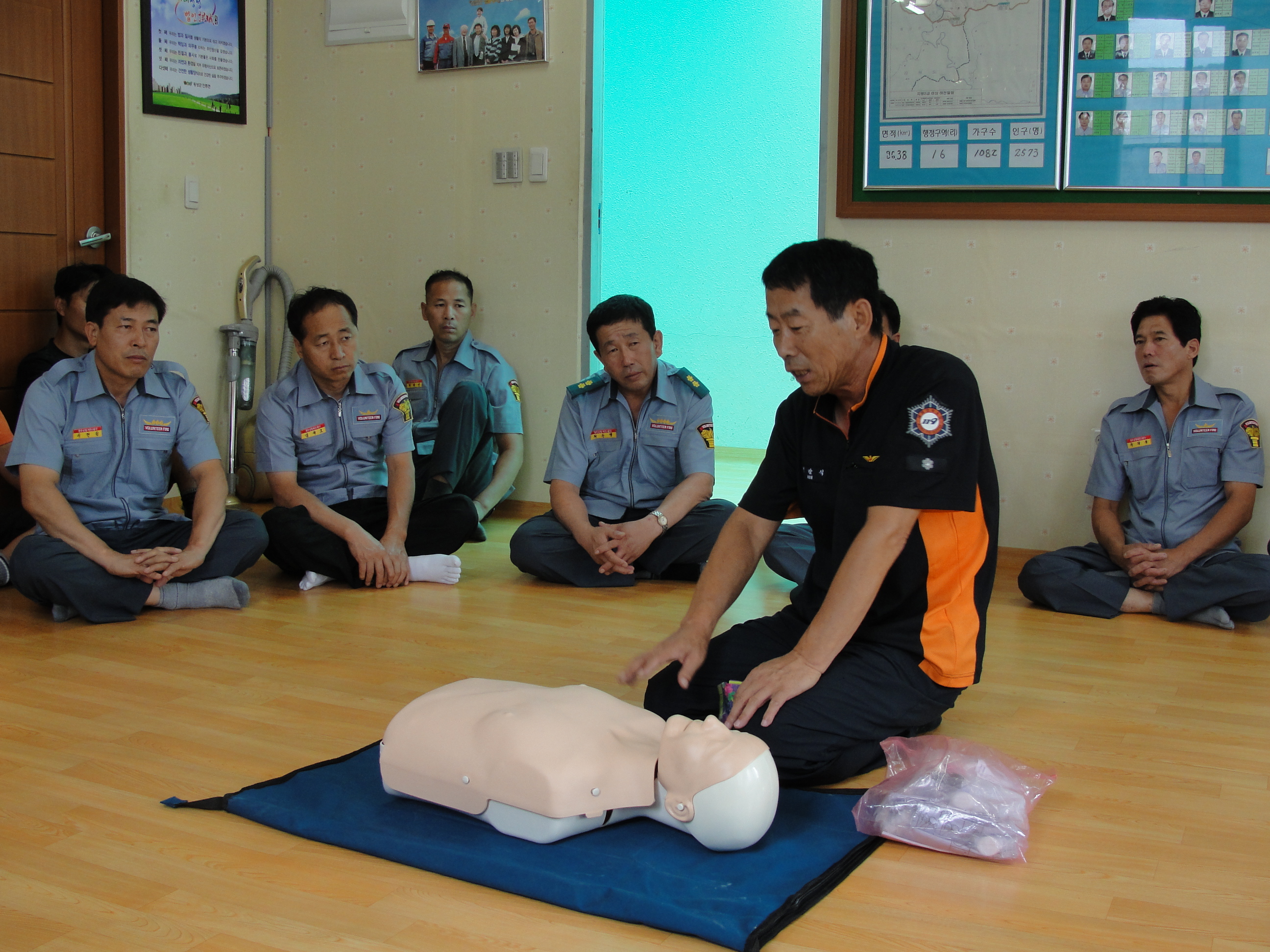 센터장 주관하에 심폐소생술(CPR),화재와의 전쟁 관련 수행 계획/목표,현장활동시 안전사고 방지교육을 실시하였으며 무더위 속에서도 불구하고 많은 대원분들이 교육에 열의를 보였습니다.
