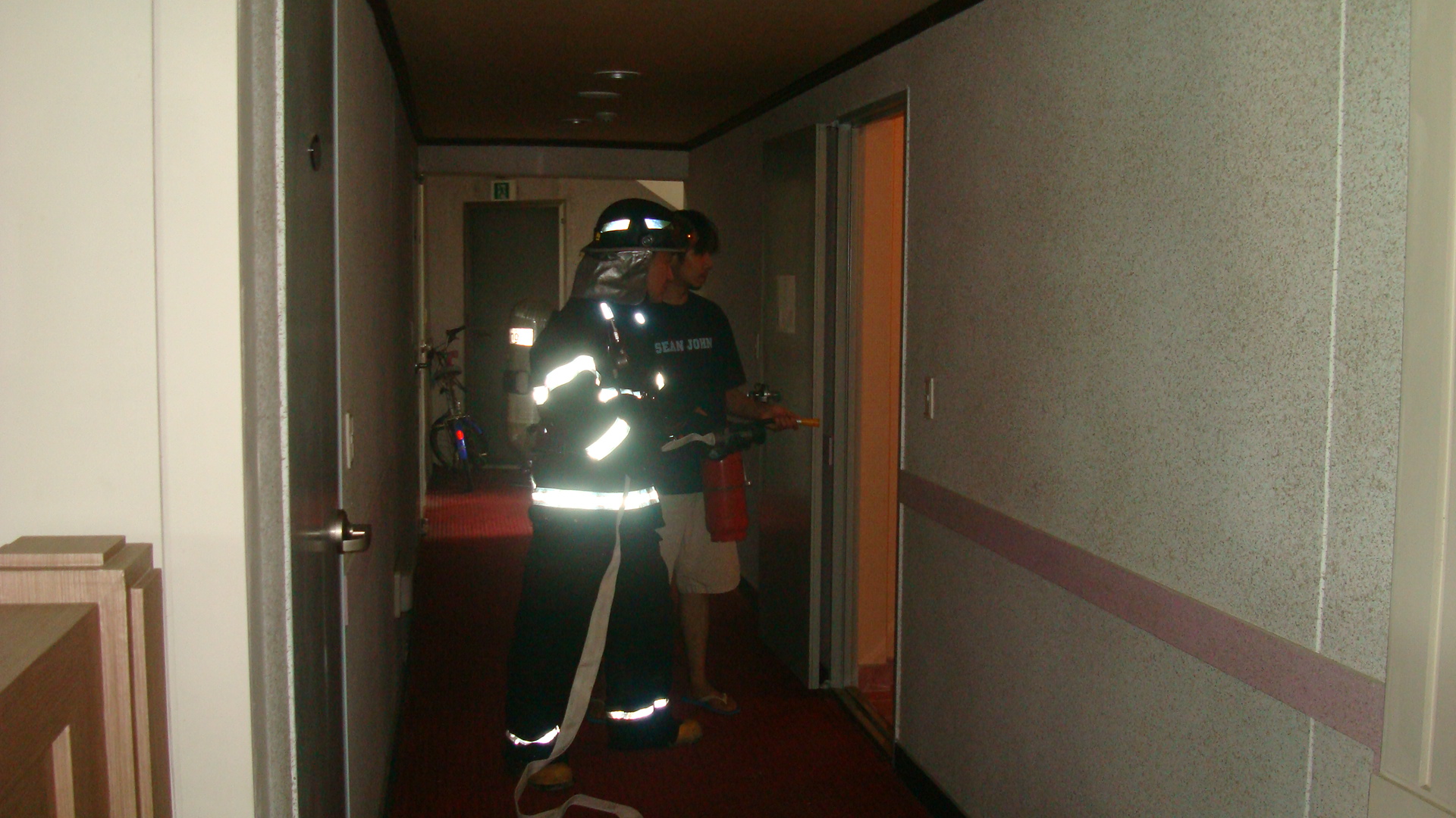 금일 소방훈련은 불특정 다수인들이 이용하는 숙발시설로 화재시 다수인명피해 우려가 예상되어 내부구조 및 비상구 확인, 관계자 인명대피 훈련, 연결송수관점령, 소방안전교육, 완강기 사용법교육을 병행하여 소방훈련을 실시하였습니다.