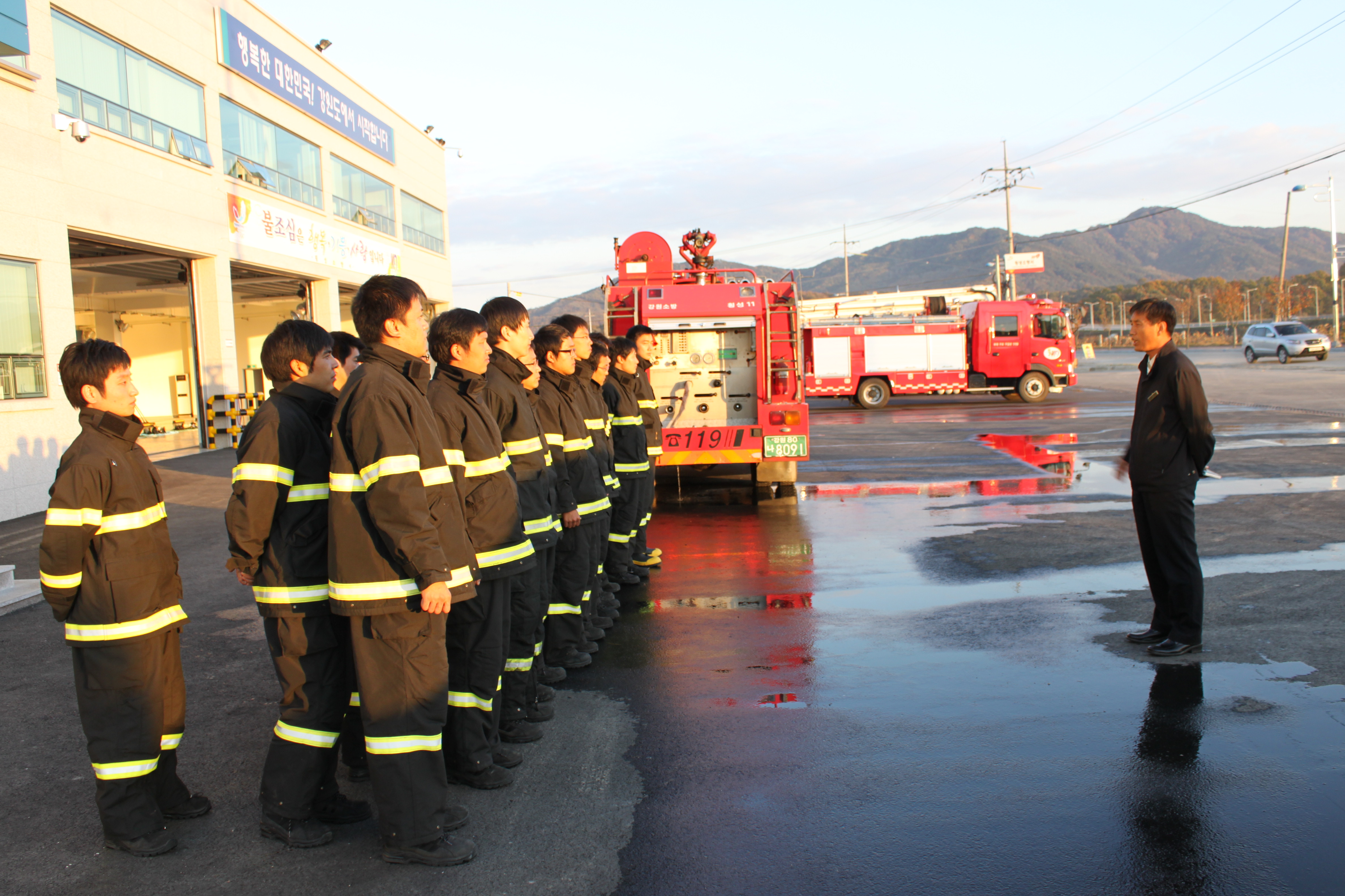 횡성소방서(서장 : 조근희) 본서 대회의실과 차고에서 신규임용발령자에 대한 교육을 실시하였습니다.
