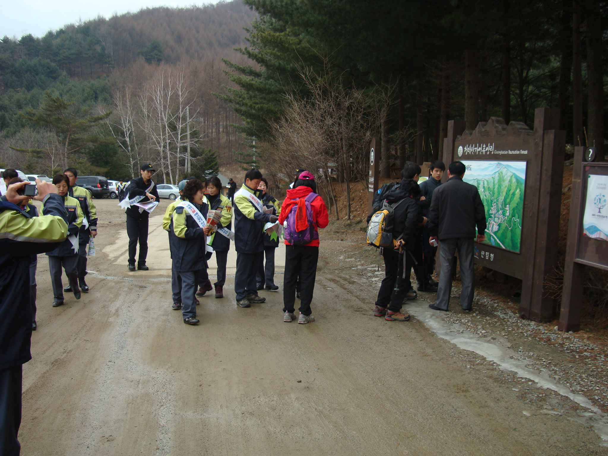 횡성소방서(서장 조근희) 2011. 4. 2.(토) 둔내119안전센터는 둔내남·녀 의용소방대와 함께 둔내 청태산 등산로에서 산불예방 플래카드를 설치하고 등산로 등 취약요소 정비, 제거 및 산불예방을 위한 시민계도, 구급대원 폭행방지 캠페인 , "소방차 길 터주기" 등 소방통로확보 홍보(전단지 배부)를 실시하였습니다.