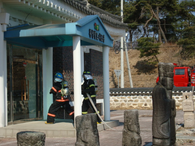 2011.4.9(토)~4.10(일) 2일간 우천면 정금리 정금민속관에서 개최되는 제25회 회다지 축제는 축제 기간 10,000정도의 인파가 몰릴것으로 예상되는 우리지역의 큰 행사이므로 우천센터에서는 사전 현장적응훈련을 통하여 축제장 주변의 소방차량 진입로 확인, 수관연장 훈련, 민속관 건물 구조파악,축제당일 축제장 주변이 혼잡할것으로 예상되어 관계자와의 소방차량 대기장소등의 협의 등 축제당일의 안전을 위하여 철저한 훈련을 실시하였습니다.