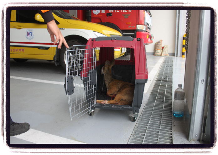 횡성소방서(서장 조근희)는 6월1일 07:27분경 고라니 1마리를 포획하여 횡성군 청정환경지원단에 인계하였습니다. 공근초등학교에 무단으로 침입하여 창틀에 끼인채 발견되었는데요. 포획당시 몸에 많은 상처가 발생한 상태로 하루 빨리 건강을 되찾아 자연의 품으로 돌아가길 기원합니다.