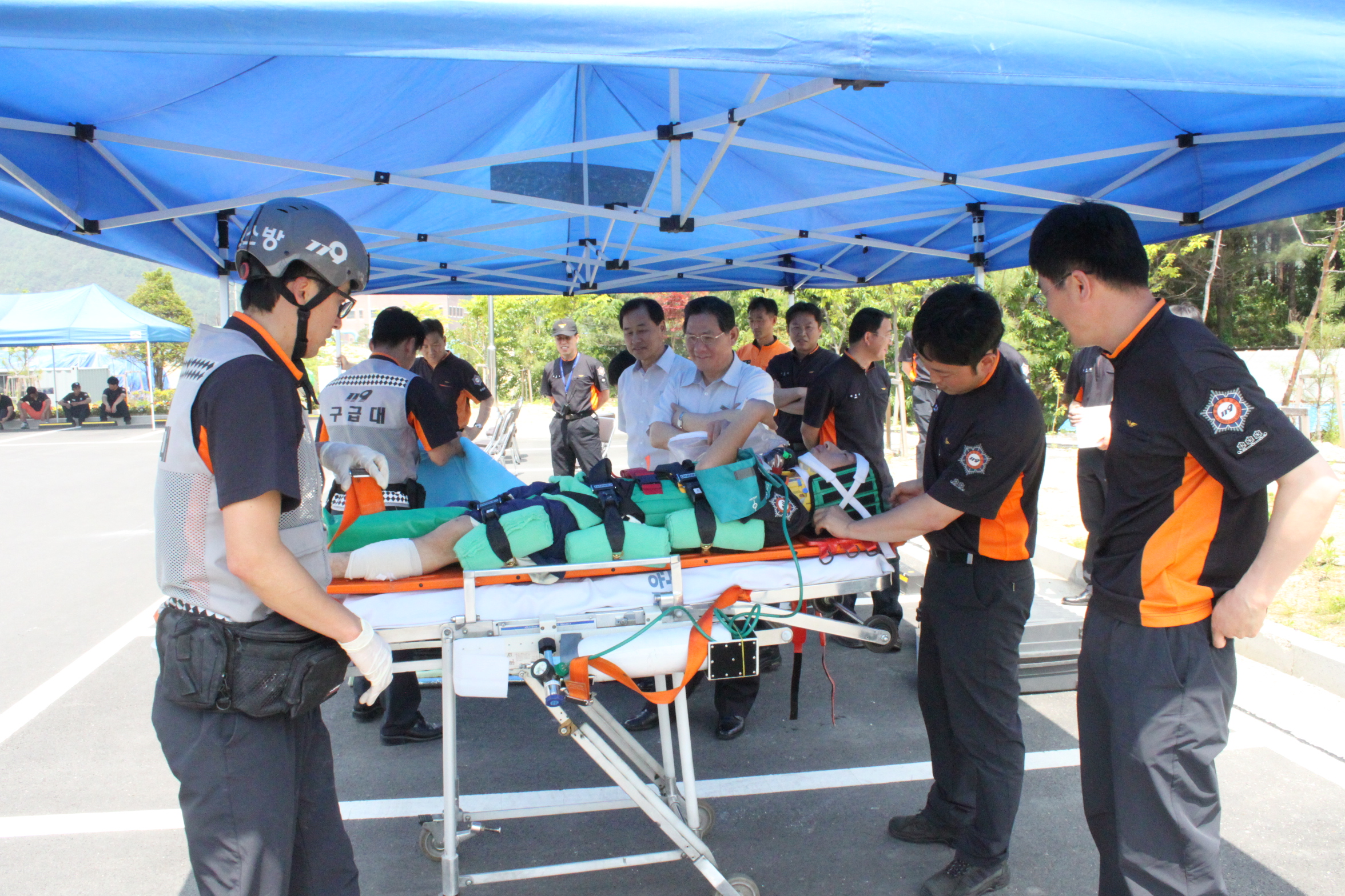 횡성소방서(서장 조근희) 예방안전과에서는 6월3일 10:30 본서 후정에서 소방기술경연팀 연습훈련 시연을 개최했다. 서장님을 비롯한 본서 직원들의 격려속에 선수들은 그동안 갈고 닦은 실력을 선보였으며, 본 대회를 앞두고 자신감을 갖는 계기가 된 것 같다. 본 대회는 6월 9일,10일 이틀간 동해종합운동장에서 실시하고 화재진압, 최강소방, 응급처치 등 4종목이 열린다. 남은 일주일동안 준비를 잘해서 최고의 성적이 나오기를 기대한다. 더 찐 한 횡성 ~~ 화이팅!!