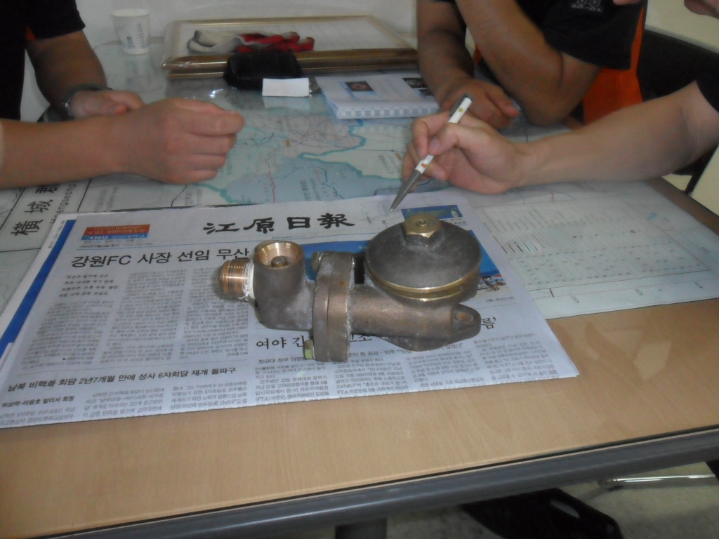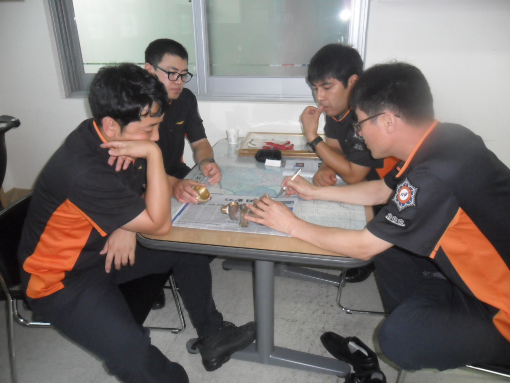 횡성소방서(서장 조근희) 횡성119안전센터에서는 2011.7. 23(토) 19:00 김학영 팀장외 3팀전원은 저녁식사후 한자리에 모여 지수벨브에 대한 심층토의를 실시하였습니다. 횡성펌프1호에서 재역활를 하다가 새장비로 교체된 지수벨브를 분해하여 부품 하나하나 쓰임새를 파악하였고 그것의 원리에 대해 이해하는 등 유익한 시간을 보내며 팀원의 소방장비에 대한 지식을 고취하였습니다.