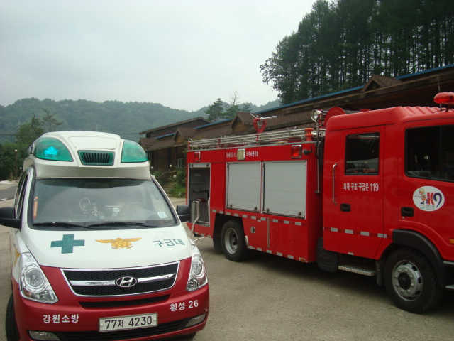 횡성소방서 (서장 조근희) 둔내119안전센터에서는 2011년 8월 10일 둔내면 삽교리에 위치한 태기산 더덕창고에서 소방훈련을 실시하였습니다.