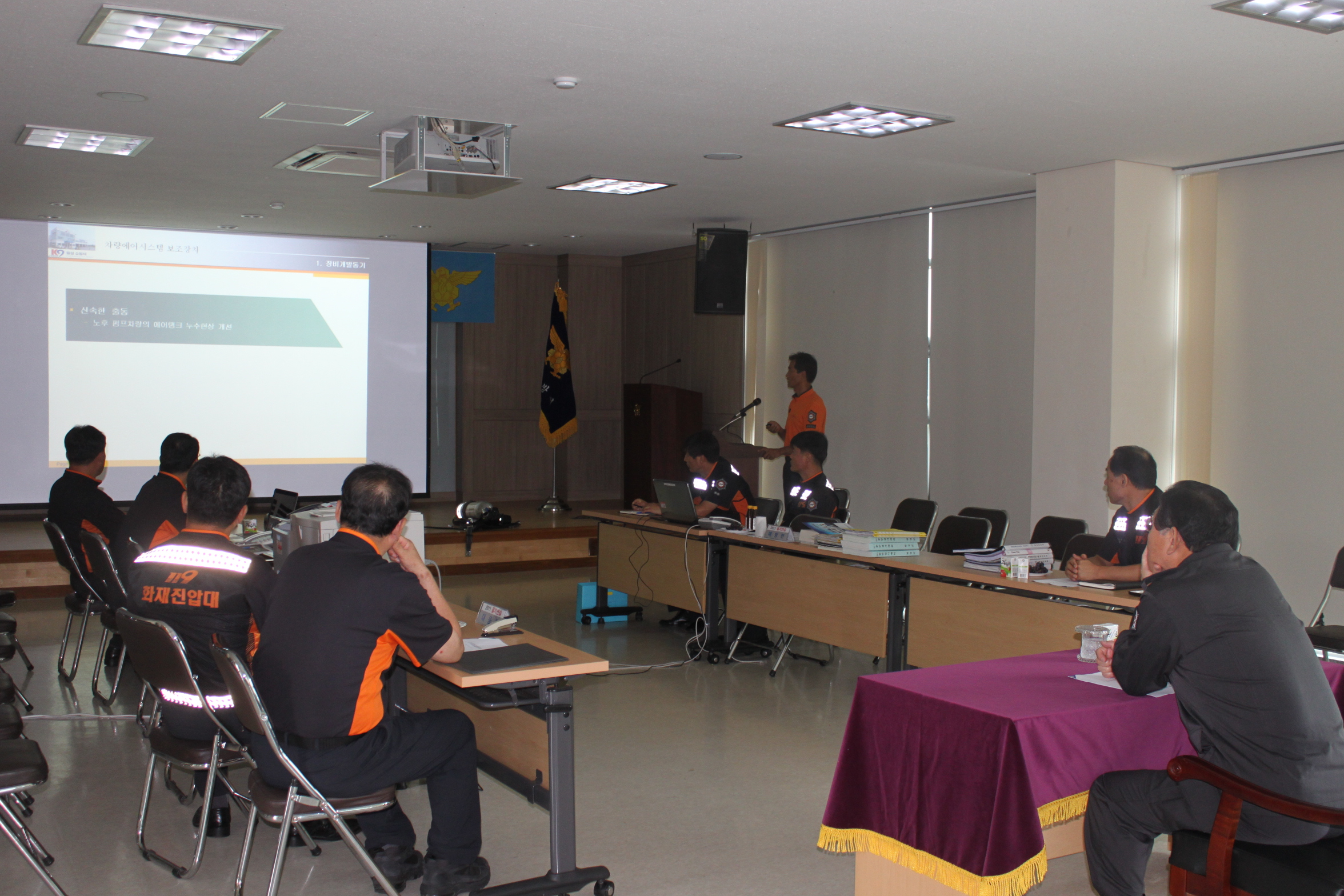 횡성소방서(서장 조근희)에서는 오늘 23일 우수소방장비개발 출품작 발표에 앞서 대회의실에서 시연회를 가졌습니다.
