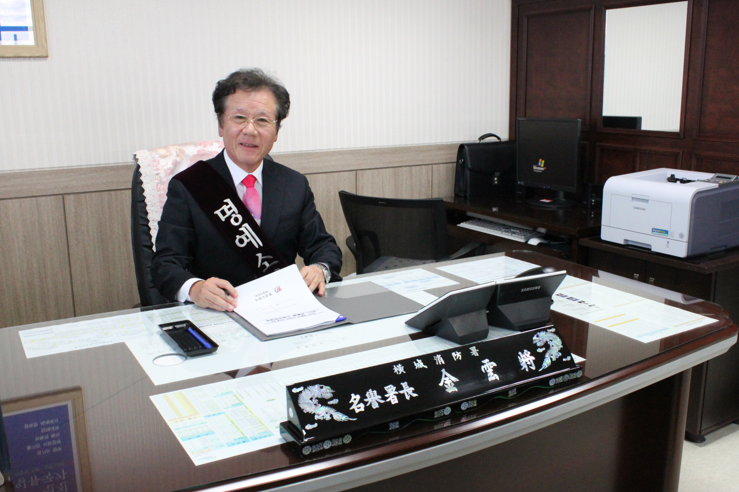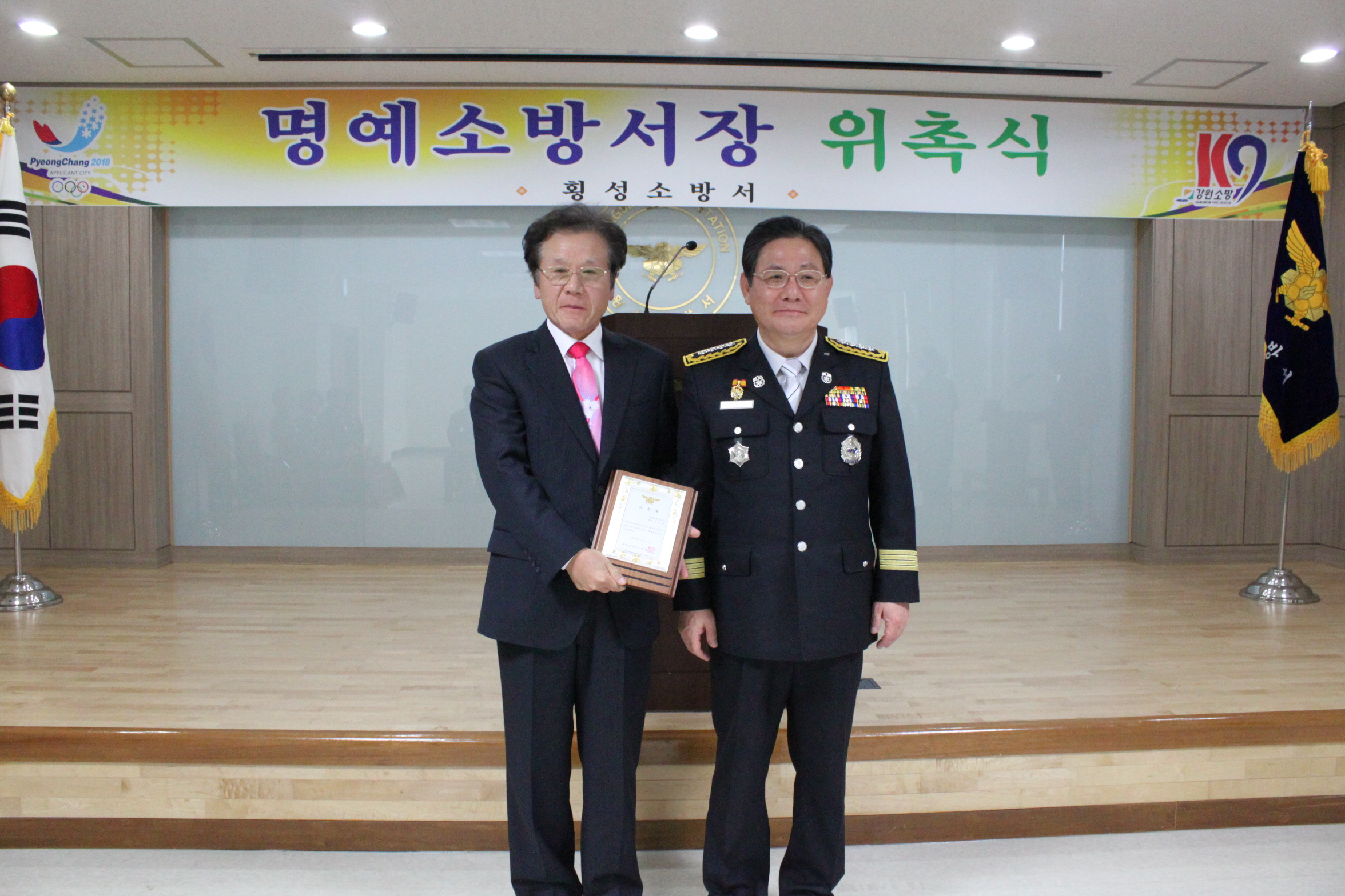 모시고 1일 명예소방서장 취임식을 하였습니다.