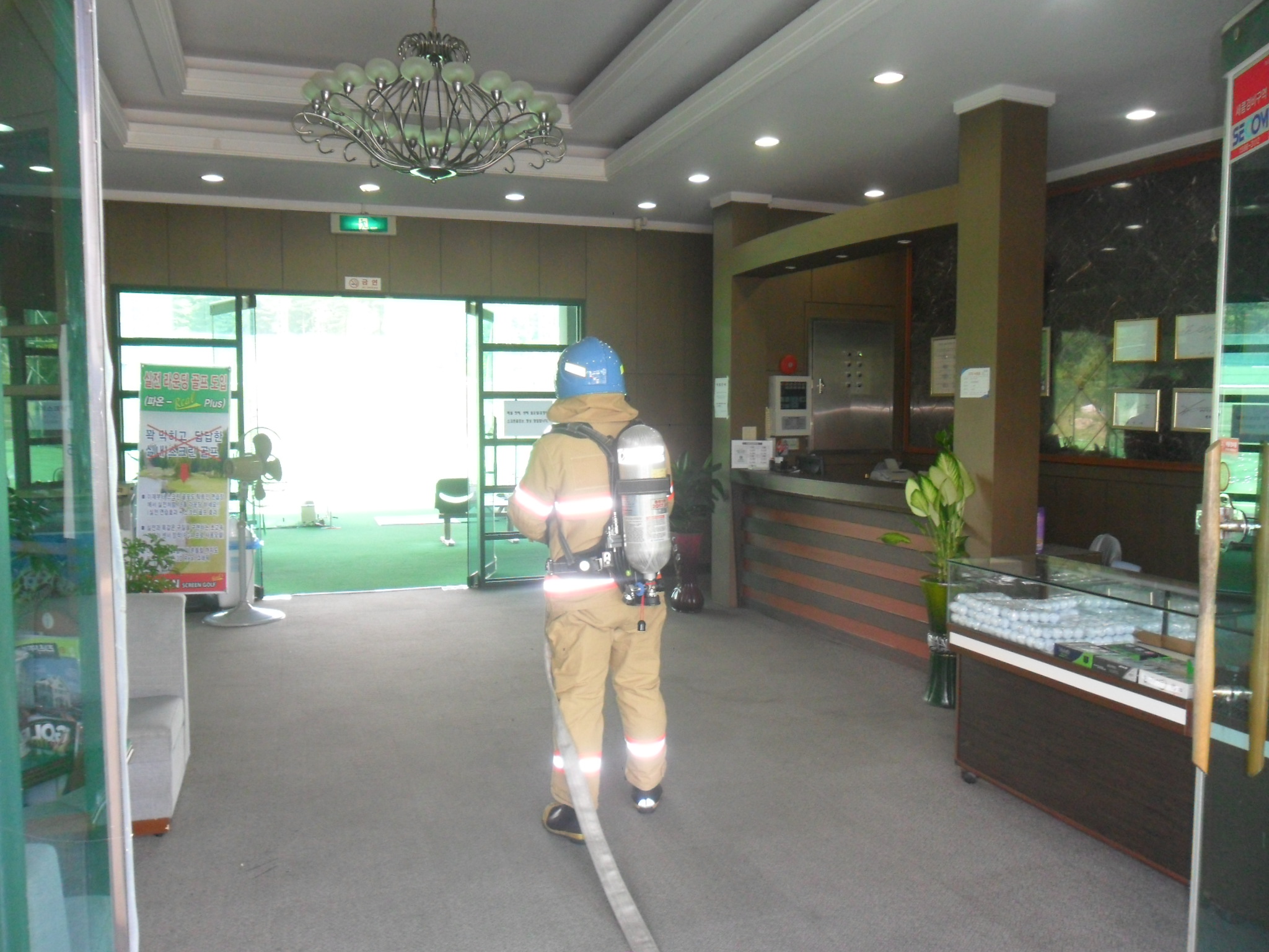 횡성소방서(서장 정은철) 방호구조과에서는 8월17일 14시경 횡성읍 조곡리에 위치한 홀인원골프연습장을 대상으로 현장출동적응훈련을 실시하였습니다,. 이번 훈련은 관계자와 협의후 가상화점선정 화재진압,인명구조, 관계자의 인명대피 및 초기대응능력을 점검하였으며, 훈련종료 후 소화기 사용법 및 119신고요령 등 소방안전교육을 병행 실시하였습니다,.