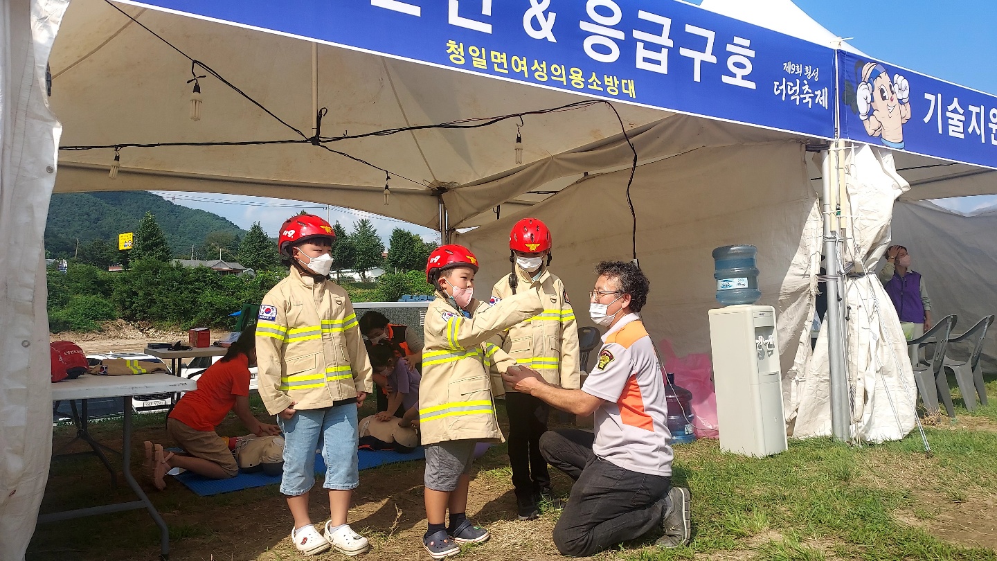 청일남·여성의용소방대원 24명은 축제 방문객들에게 △심폐소생술 이론 및 실습 △물소화기 사용법 △어린이 방화복 입어보기 체험 △소방홍보 전단지 배부 등 체험장을 제공했다,