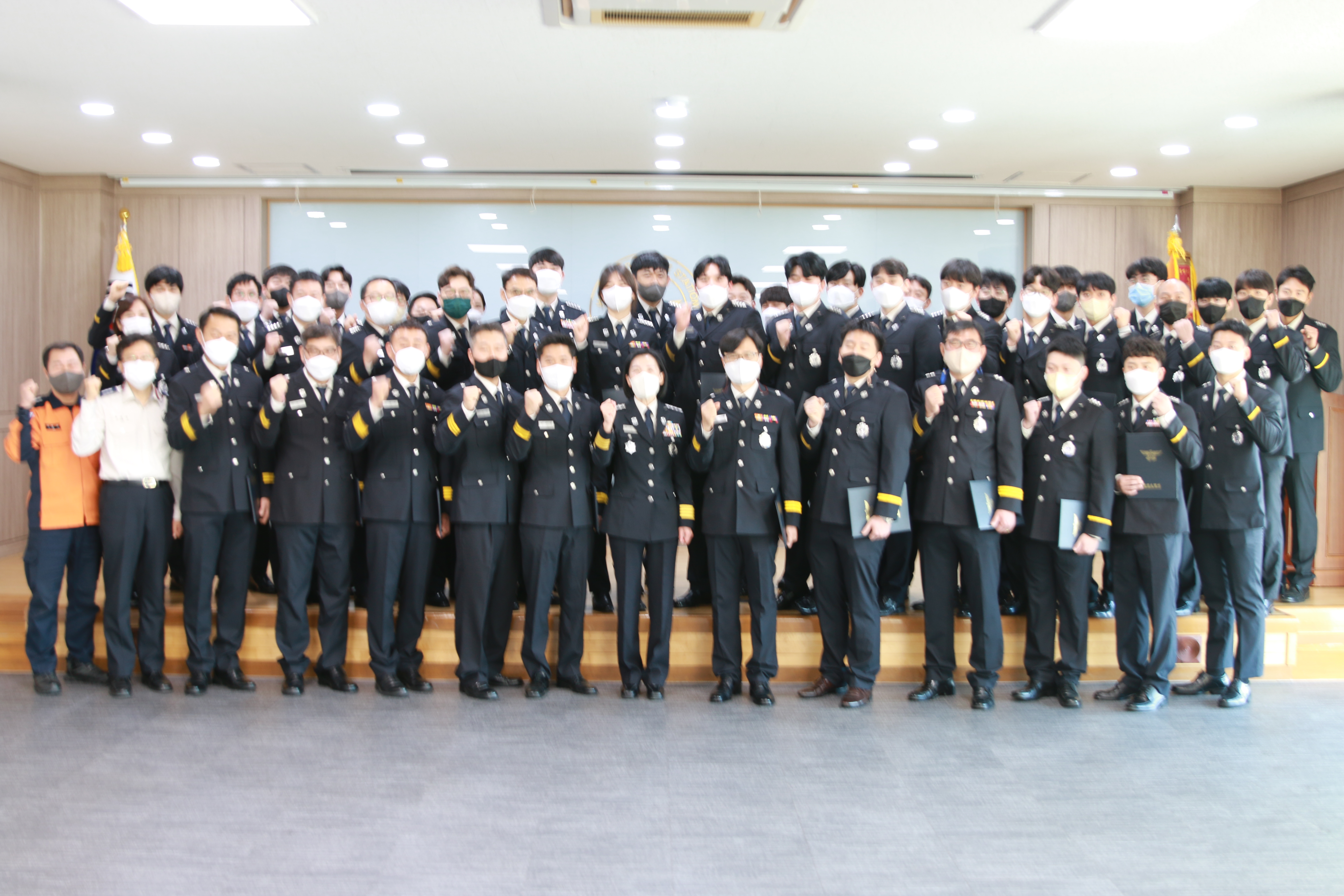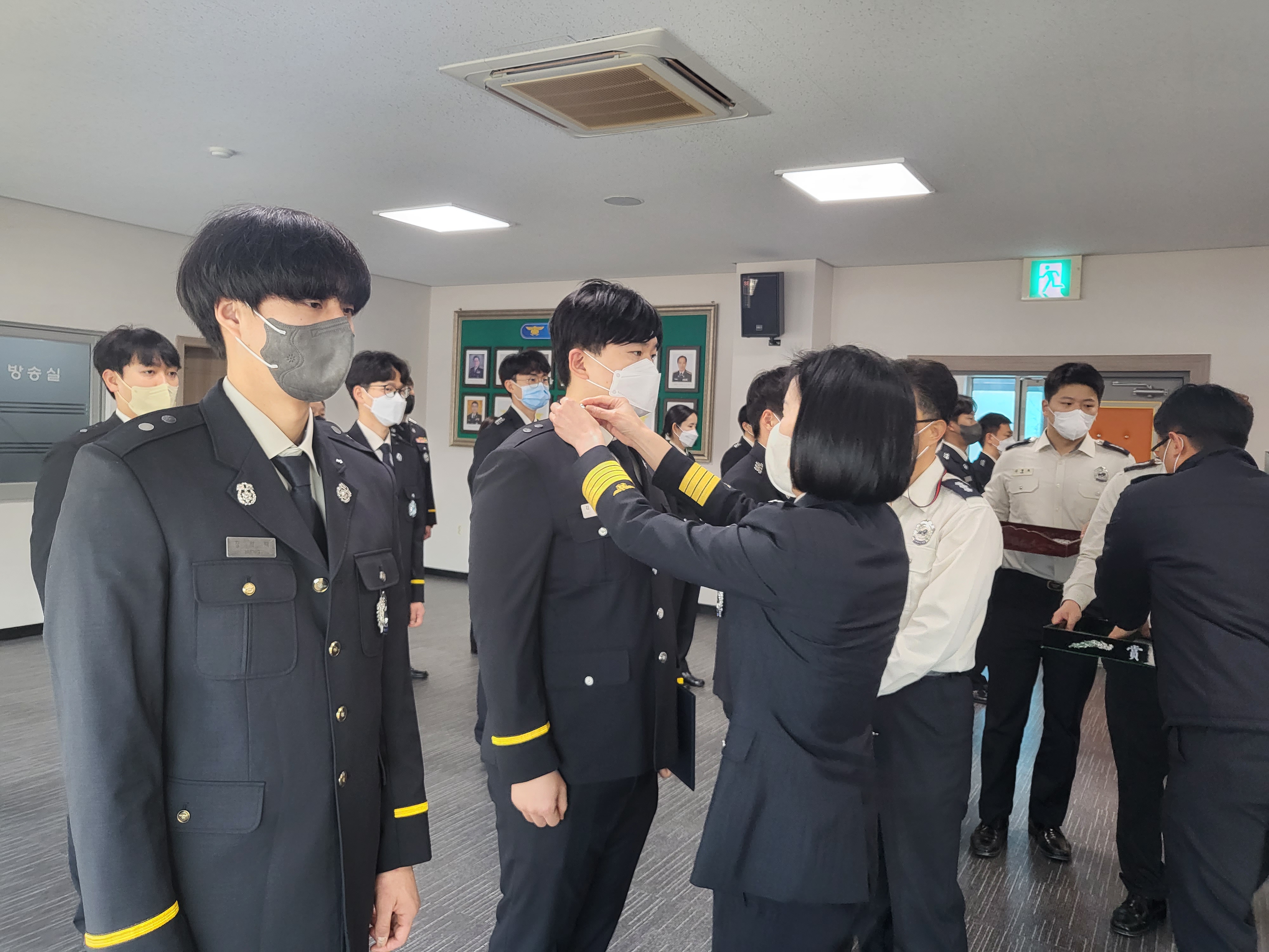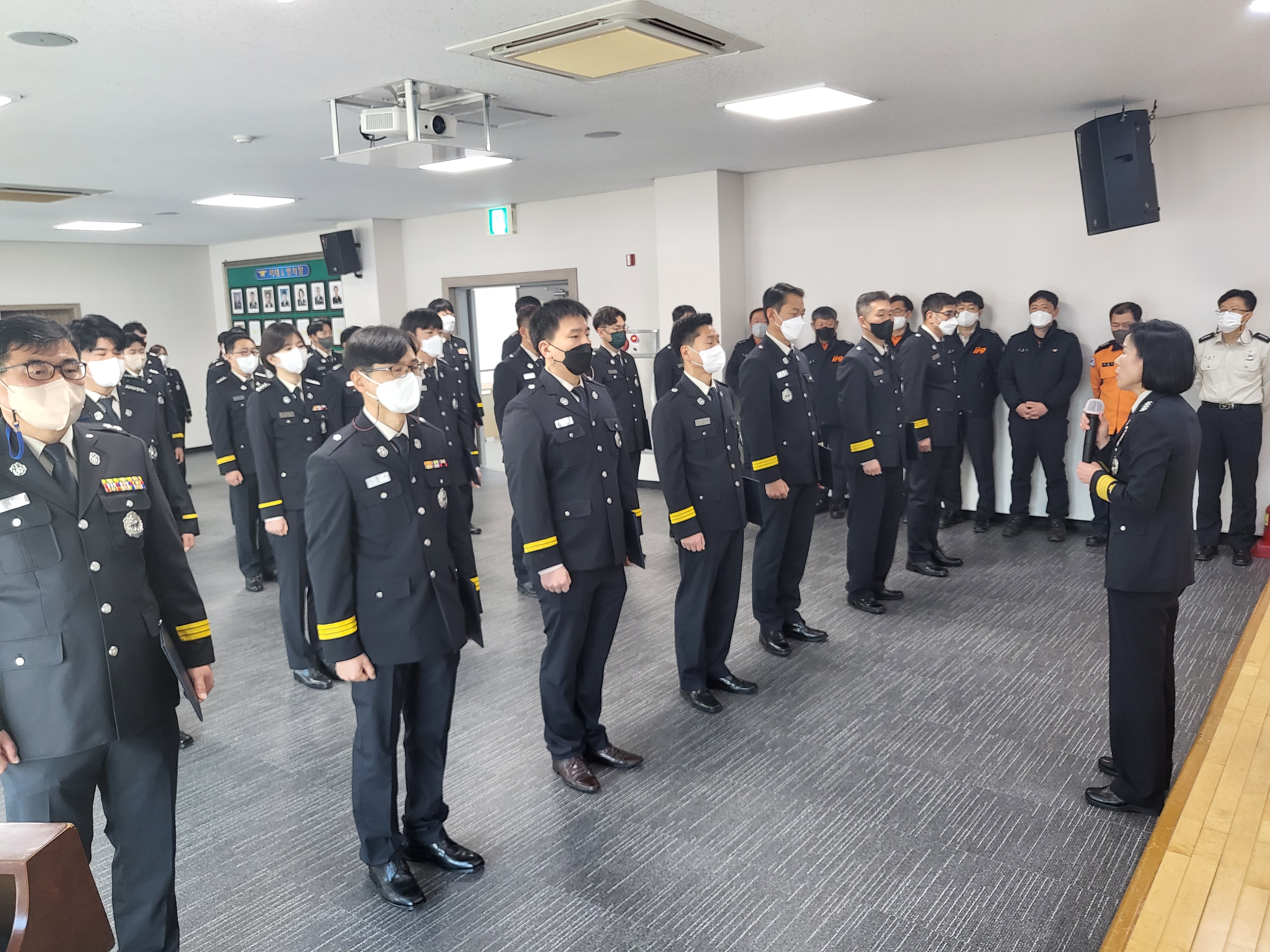 김숙자 서장은 진심으로 환영의 인사를 전하고, 진급하는 직원에게는 축하의 인사를 전하며 계급장를 직접 달아주신 뒤, 각자의 위치에서 항상 안전하고 행복하게 근무하시길 당부하였습니다!