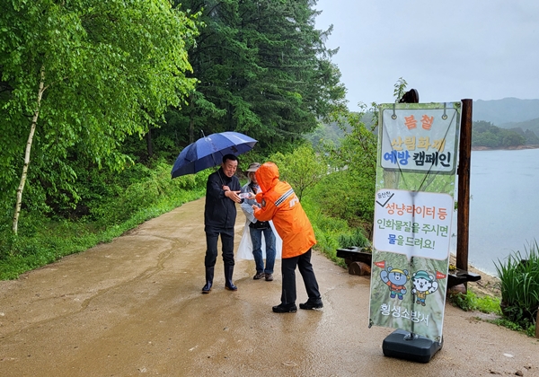 지난 5일~7일까지 3일간 열린 횡성 호수길 축제에서 성냥, 라이터 등의 인화물질을 주면 마시는 물을 드리는 캠페인을 실시하였습니다!