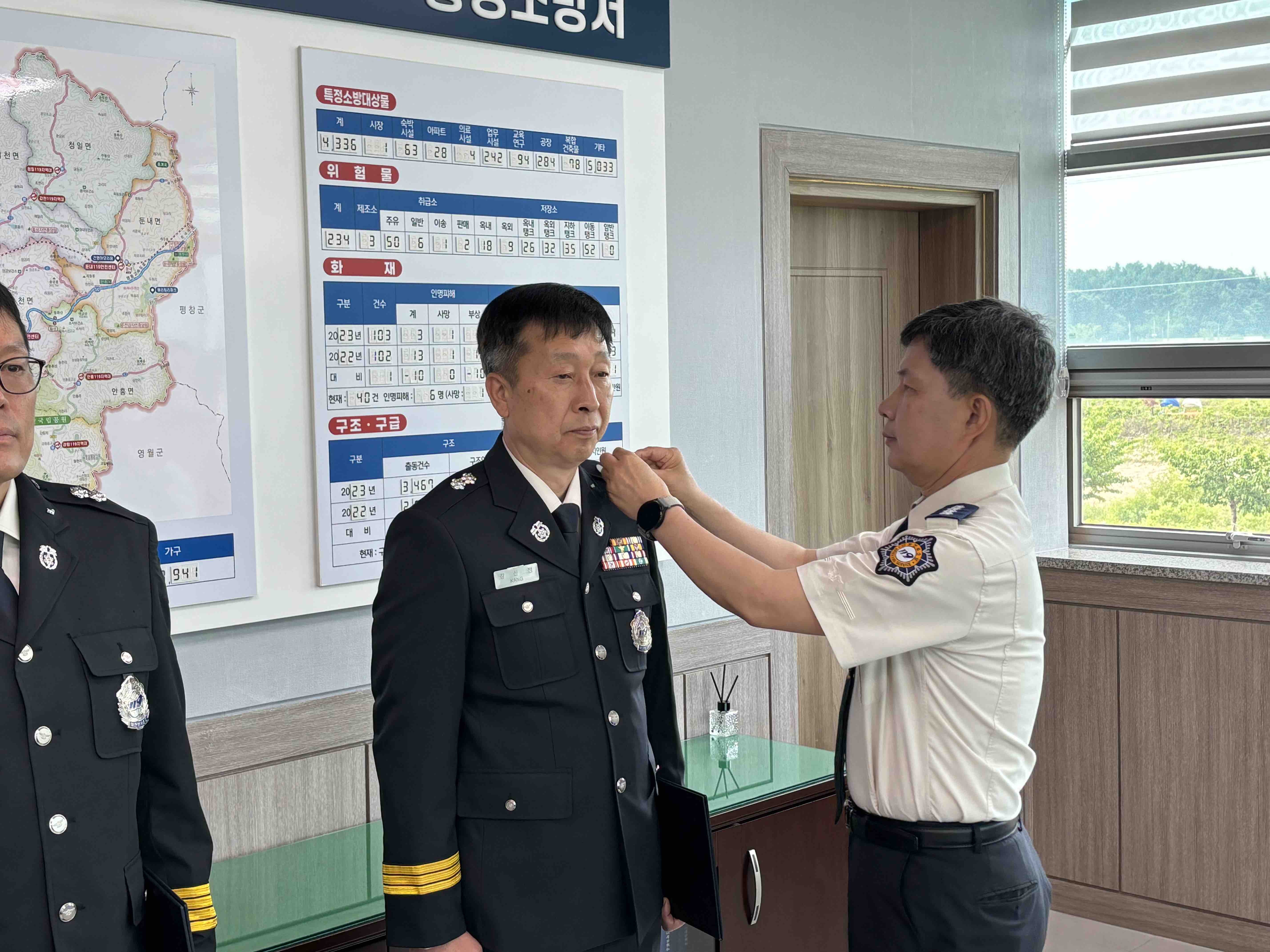오늘 서장실에서 승진자 2명에 대한 임용장 수여식을 가졌습니다.