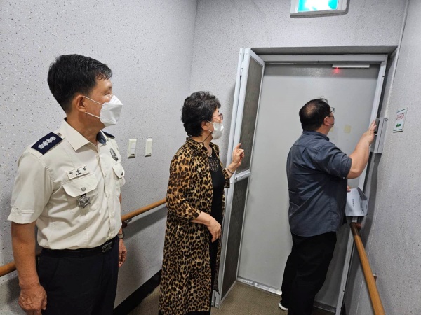 요양원 시설을 둘러보며 화재 위험요인을 제거하고 피난 상 장애요인 등을 확인하며