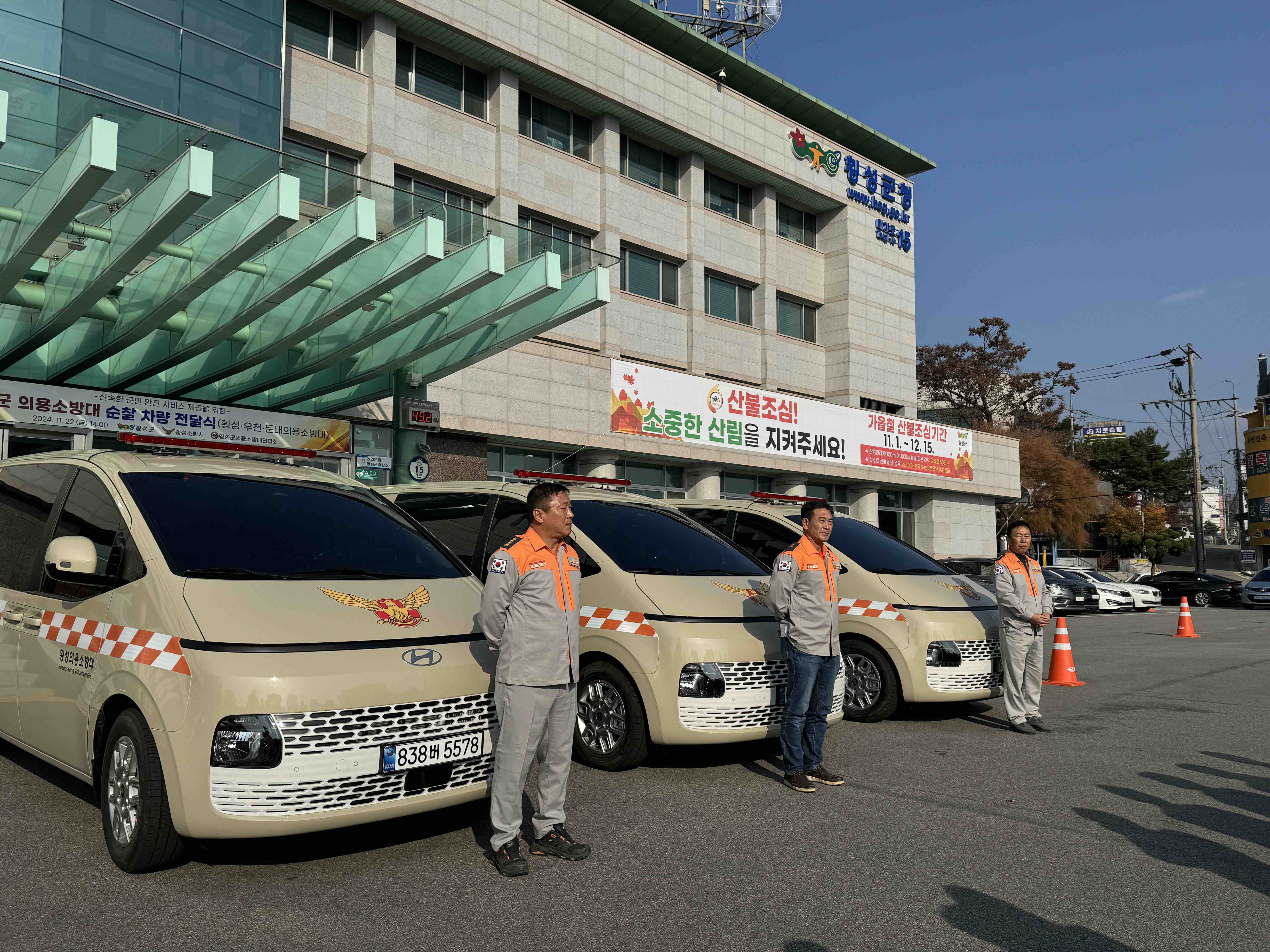 오늘 횡성군청에서 횡성소방서 의용소방대연합회 순찰차량 전달식을 가졌습니다.