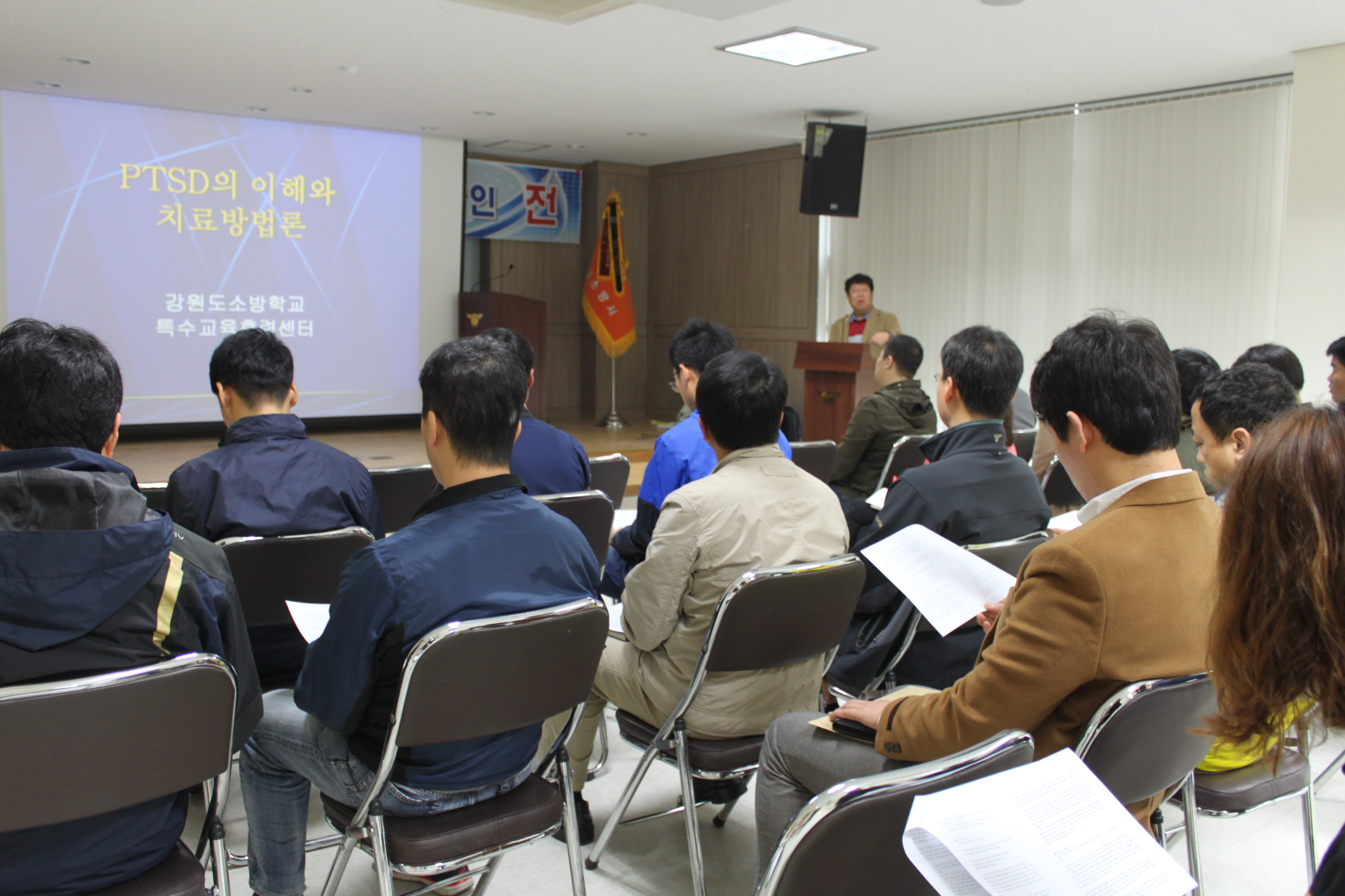 이번 교육은 구급현장에서 소방활동 중 받는 외상 후 스트레스 장애(PTSD) 즉, 심각한 외상을 보거나 직접 겪은 후에 나타나는 불안장애에 대한 사례 및 대처요령 등을 강원도소방학교 권학주 교수를 초빙하여 교육을 실시하였다.