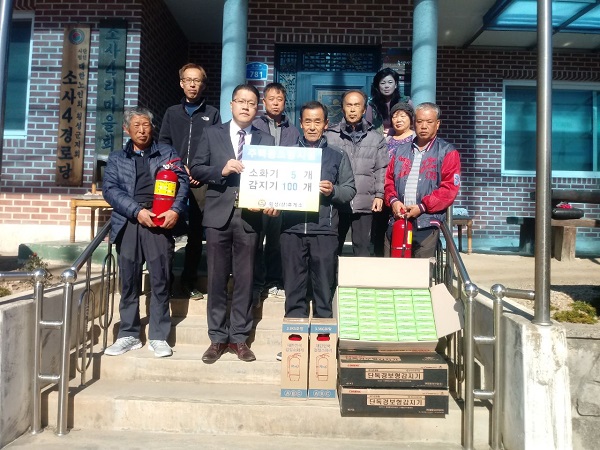 마을회관을 방문해 장한수 이장 등 마을주민에게 백만원 상당의 주택화재경보기와