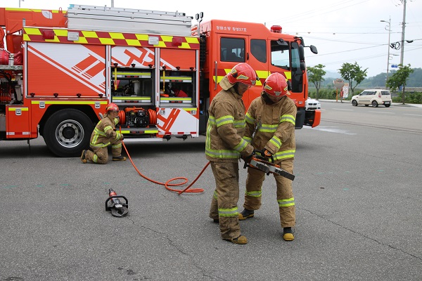 횡성소방서(서장 이석철)는 20일 소방서 차고에서 현장 출동대원을 대상으로 재난현장에 강한 소방관 양성 및 직무능력 향상을 위해 상반기 소방전술훈련 평가를 실시했다.