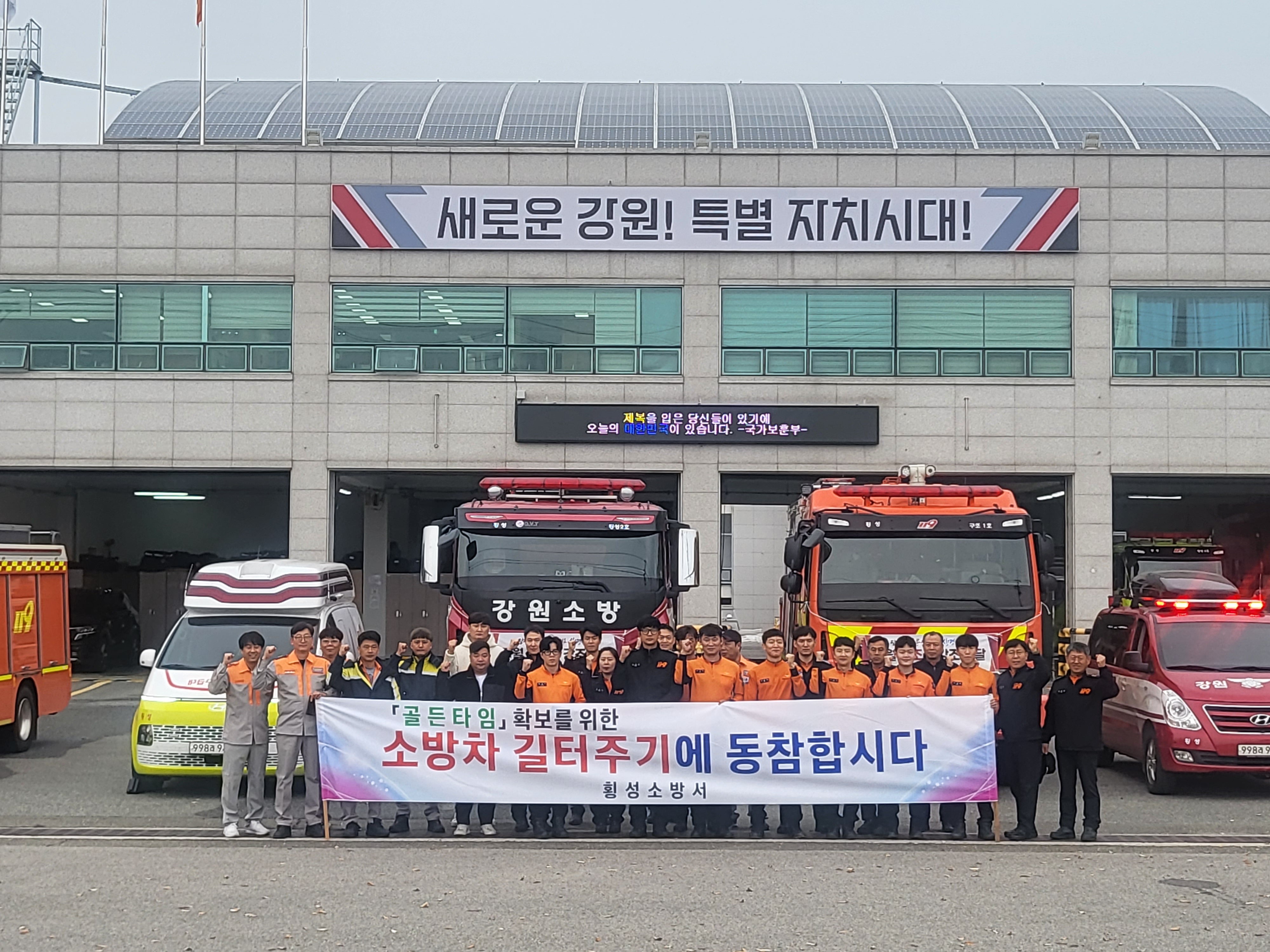 횡성소방서는 오늘 14시 횡성시장, 둔내농협 등 소방차량 통행 곤란지역에서 소방차량 길터주기 훈련을 실시했습니다. 소방차량 길터주기는 실제 출동 훈련을 통한 군민들의 소방차 양보의식 향상과 범국민적 공감대 확산을 위하여 실시하게 되었습니다. 이에 횡성소방서는 11월 불조심 강조의 달을 맞이하여 불조심 캠페인 및 주택용 소방시설 설치 캠페인을 병행하며, 군민들의 불조심 캠페인 참여를 독려했습니다!