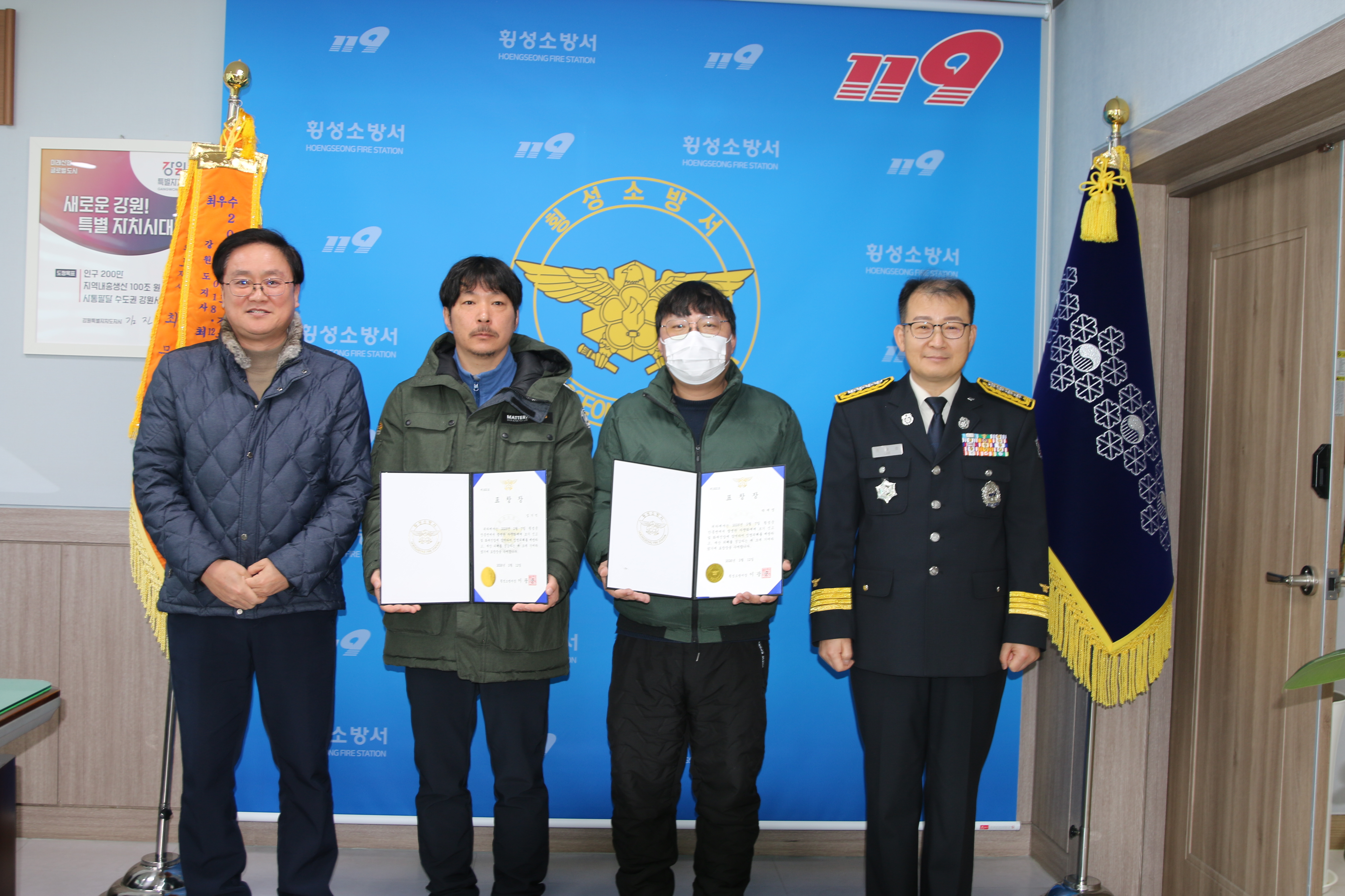 [횡성소방서, 대형화재 막은 민간인 3명 소방서장 표창]